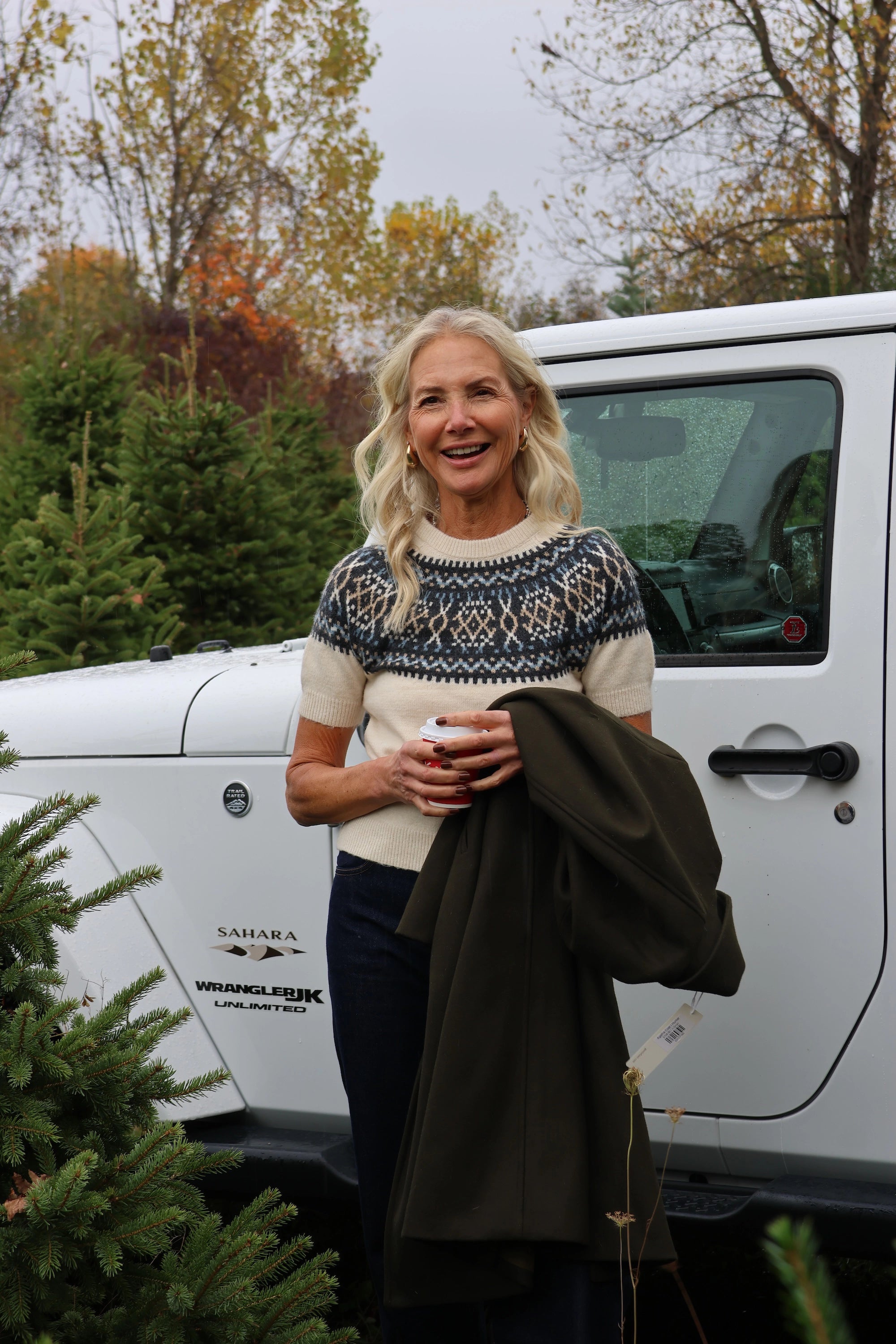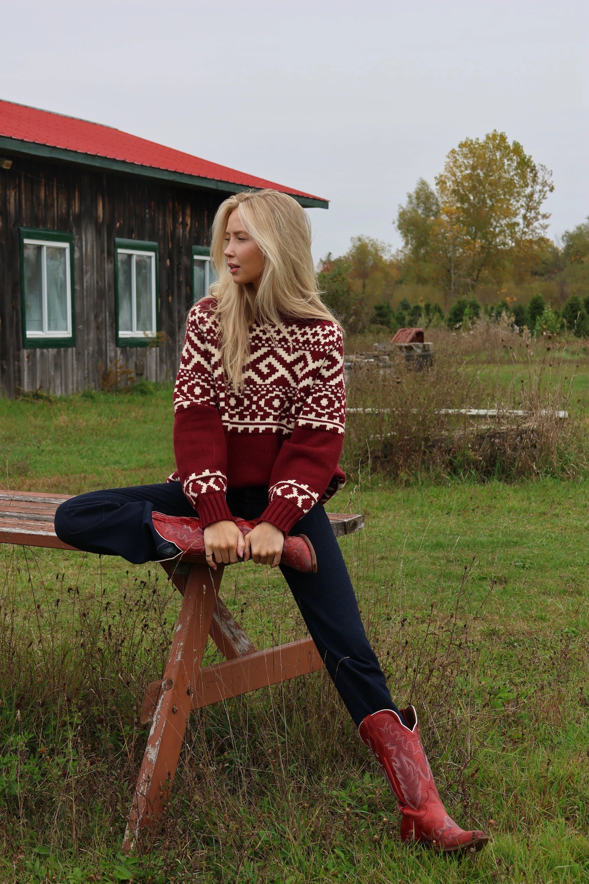 How are we styling today’s modern Fair Isle? It’s all about blending the traditional feel with contemporary silhouettes and interesting contrasts. Versatility is key and we are loving a pullover or cardi worn over a white button down with wide leg denim or barrels and loafers for sophisticated daytime polish. Or slip on under a leather jacket for that unexpected contrast giving off cool girl meets cozy comfort vibes! Our other fave look with the Fair Isle is pairing a slightly oversized crew with something slinky like a satin midi slip dress (hello..Isra dress!) and boots or kitten heels..absolute 10/10!!!!
