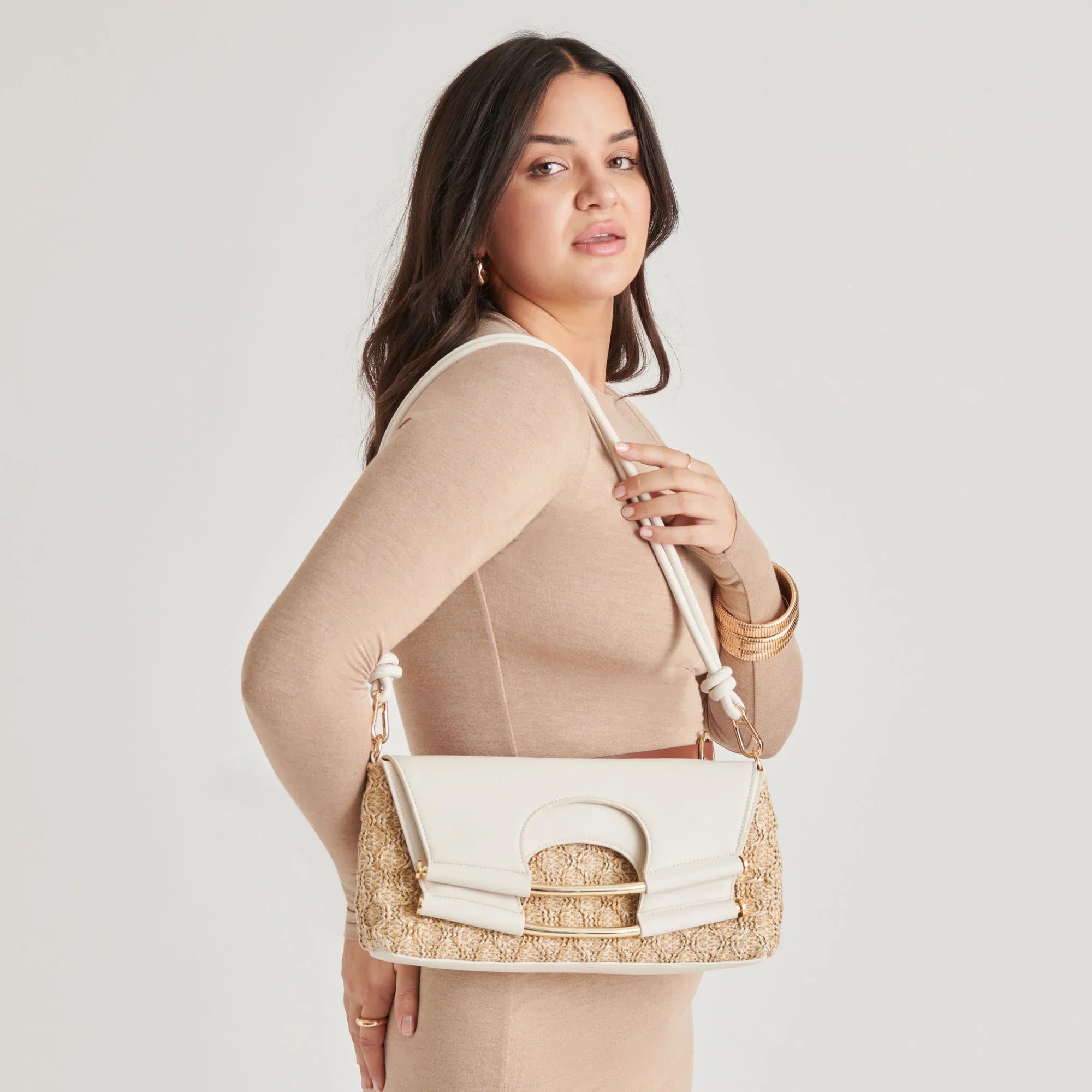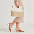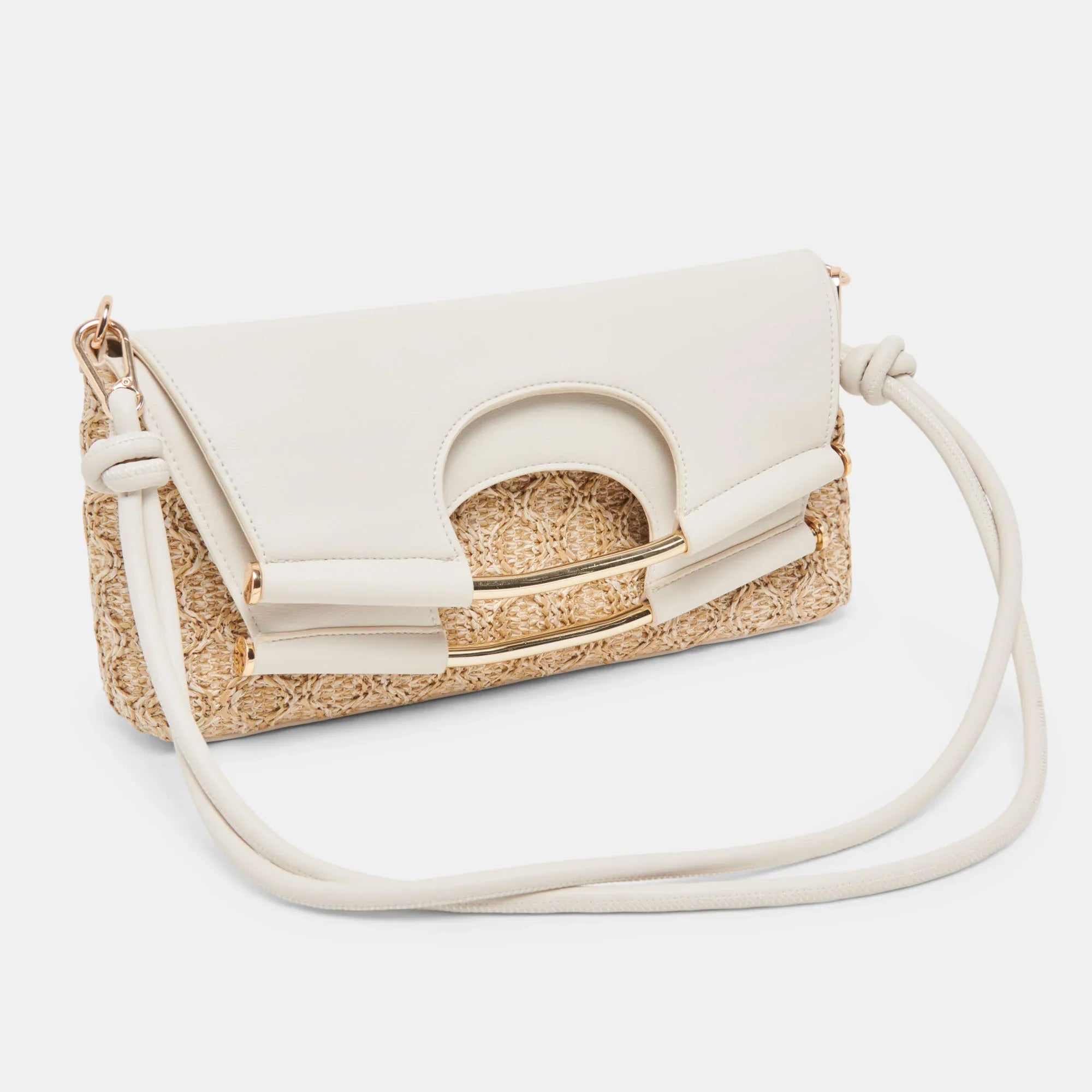 BIANCA is a lesson in chic versatility. Its textured raffia, paired with neutral ivory and a sleek metal handle, make it an ideal accessory for any occasion. Carry it as a clutch for your weddings or attach it to its knotted strap for hands-free style.