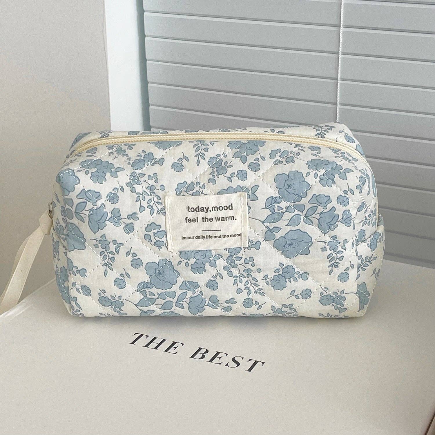 Feature: * Floral Print * Padded * Beige Cotton Canvas Lining Inside * Portable * Simple, Sweet * Zipper Closure Material: * Cotton and Polyester Size: 23 * 13 * 15cm/23 * 7 * 19cm/15 * 7 * 9cm Package: * Package include 1 * cosmetic bag.
