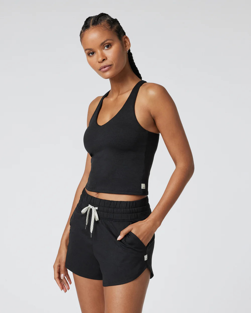 Match this flattering v-necked crop top to joggers and to complete your full DreamKnit™ look. This crop is made of all-performance stretch jersey in the softest fabric ever and features double strap details and a light-support built-in bra with removable cups in a honeycomb mesh lining. Great for yoga and travel.