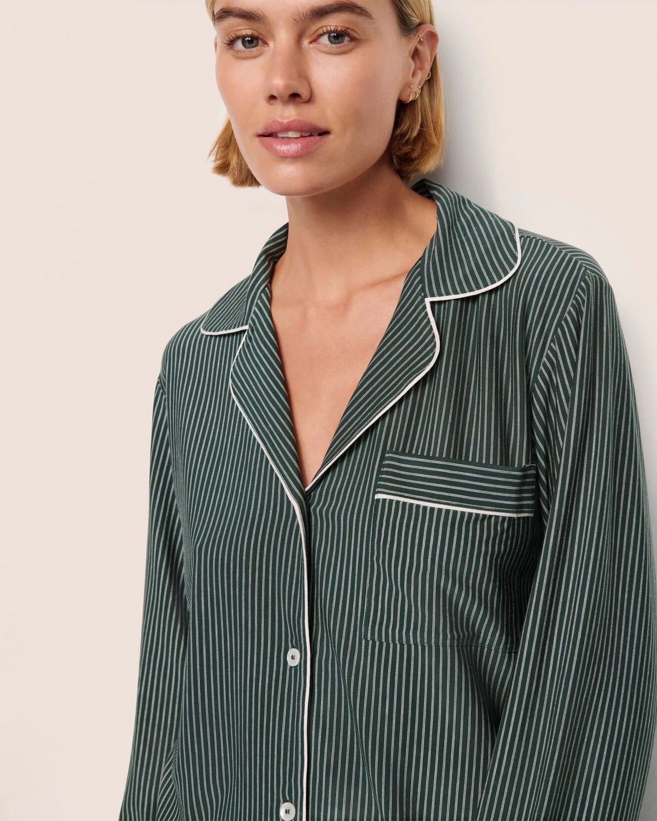 Gisele Printed Long PJ | Duo Stripe Pine/Ivory