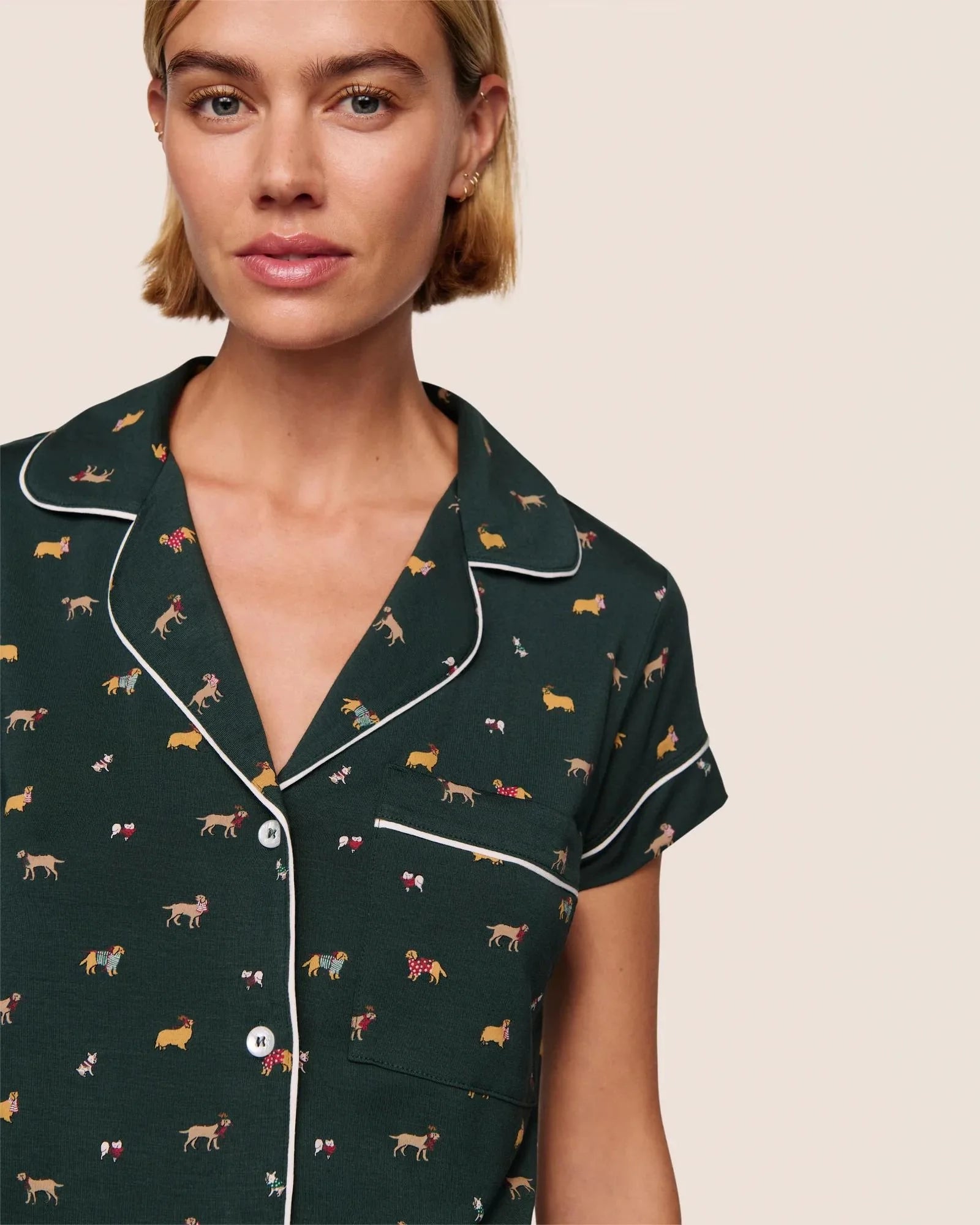 Gisele Printed Shortie PJ | Holiday Dogs/Ivory