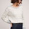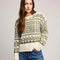The Cypress sweater is made of a soft yarn with a jacquard knit pattern. Features include a crew neckline and wide ribbed sleeve cuff and hem band.