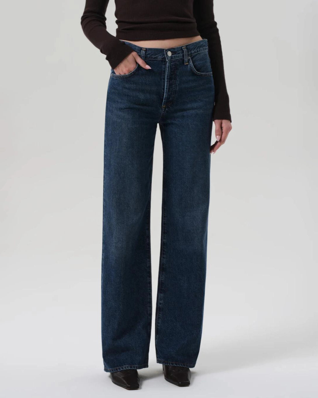 The ‘Annina’ jean is cut with a high rise and full-length 33" inseam for a sleek, elongated shape. The ‘Westwood’ wash is a deep indigo with soft fading and whiskering, crafted from rigid denim made with a blend of recycled cotton and lyocell for a gently worn-in feel. Style with a crisp button-down or oversized knit for effortless balance.