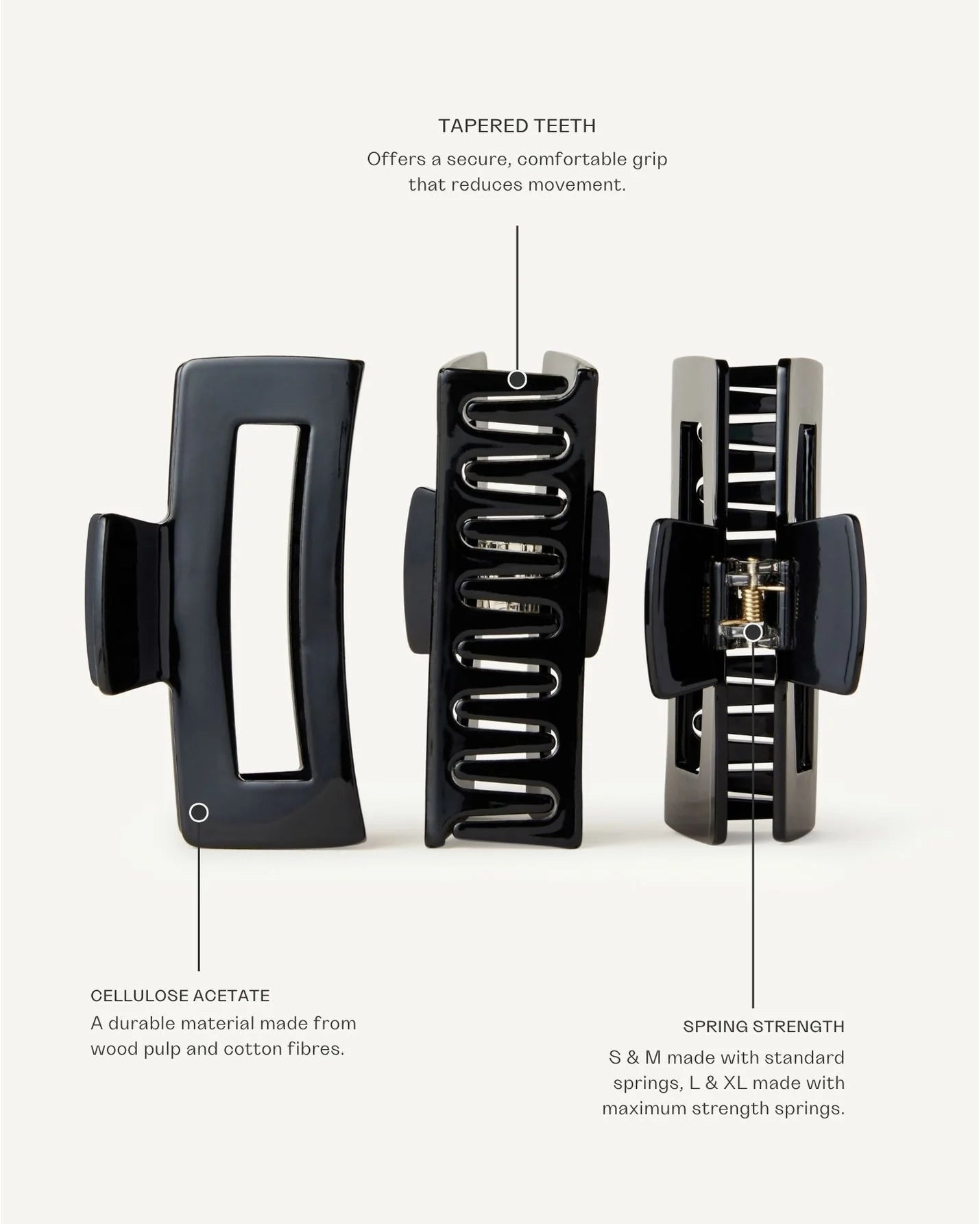 Crafted from Cellulose Acetate, the Daily Clip offers a premium feel and lasting durability, setting it apart from standard plastic claw clips — unique acetate designed exclusively by our team.