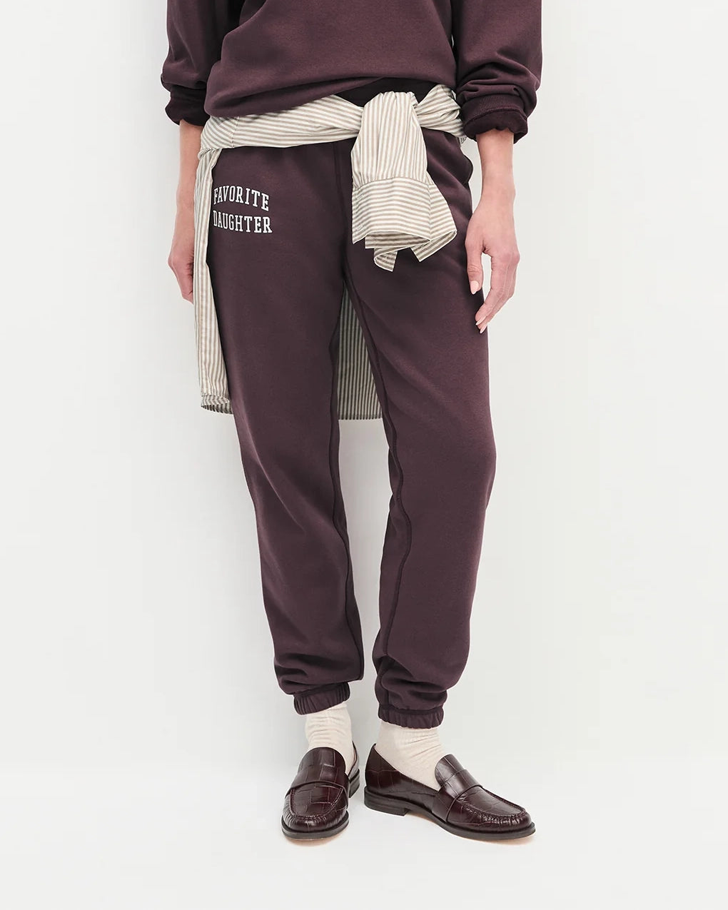 The comfiest pair ever made. The Collegiate Jogger is that super-soft favorite with a relaxed, classic fit, the Favorite Daughter logo (of course), and an easy 11.75" rise with a 30.5" length.