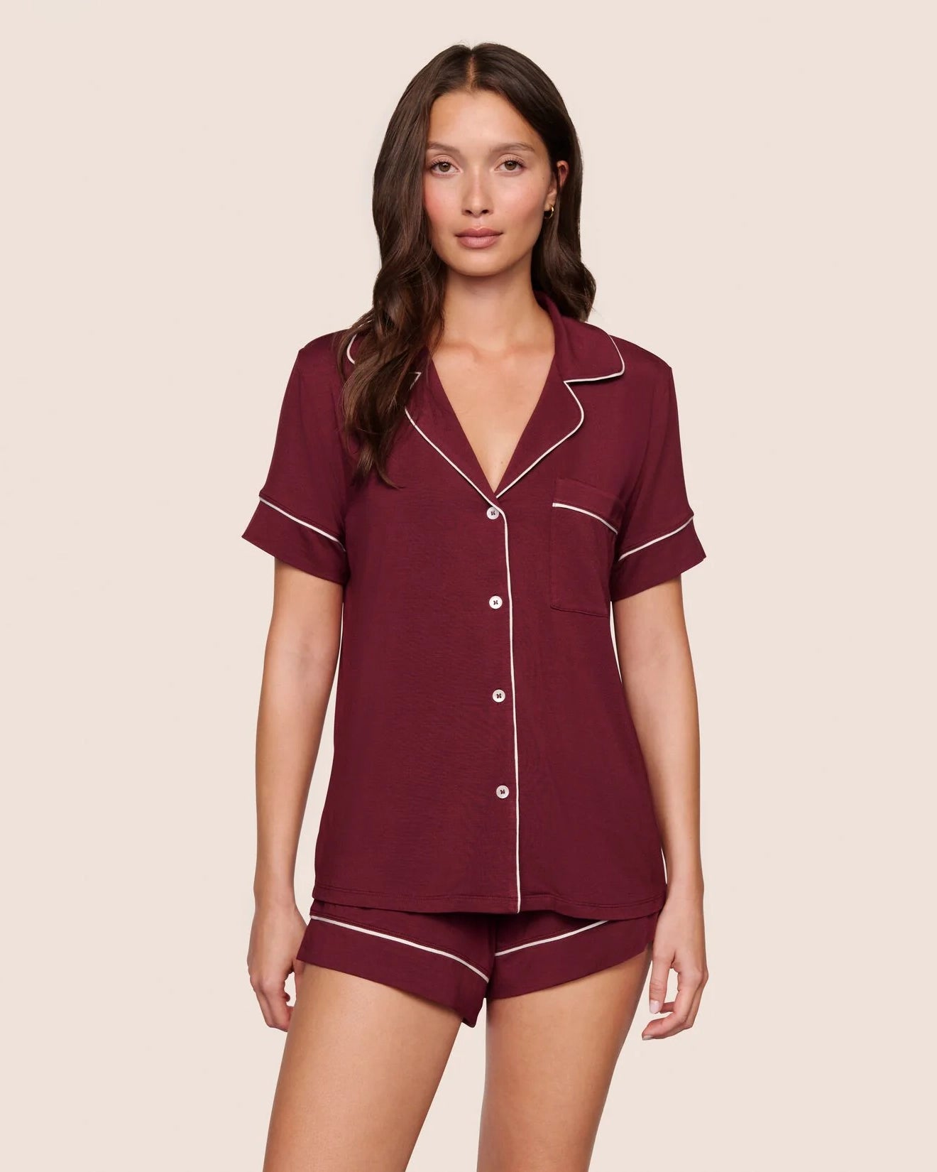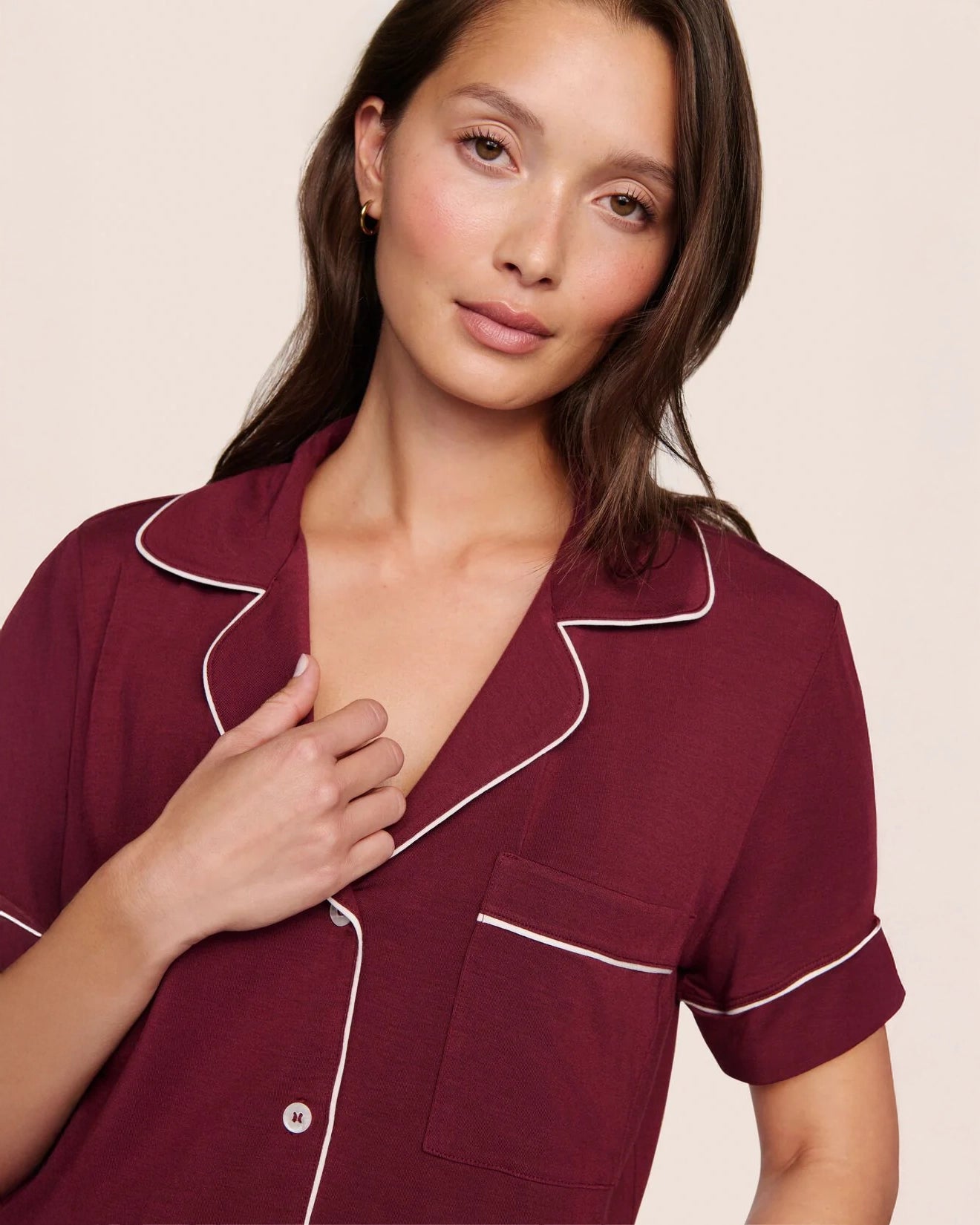 Gisele Relaxed Short PJ | Bordeaux/Ivory