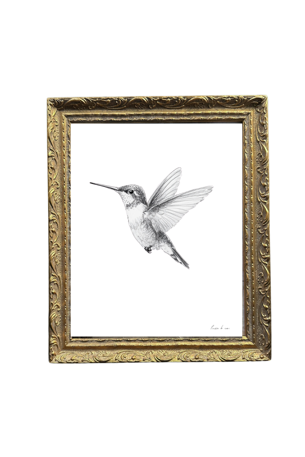 Hummingbird Sketch | French Brass Gold Mould Framed Art