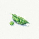Print of original watercolor painting of a sweet pea pod. This reproduction is digitally scanned and printed at actual size of original painting on fine art matte paper that provides vibrant color and exceptional detail using archival inks guaranteed to last 100 or more years (if it doesn't, let me know). Image size is no larger than 1.25" x 1.25" and is printed on 5" x 5" fine art matte paper. ° Each print comes in a protective plastic sleeve with a 4 ply backboard for added support. Kitchen art. Tiny food. vegetable, healthy.