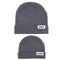 This hat set features matching grey knit beanies with a darling embroidered tab