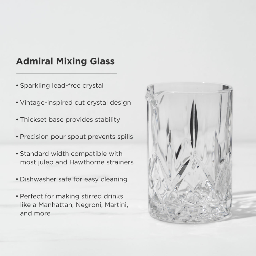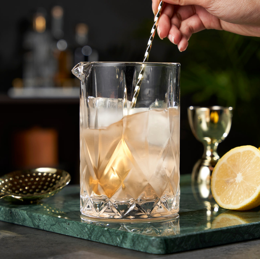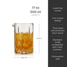 Designed and sized for expert bartending, the 500mL professional-grade mixing glass accommodates one or two drinks and works smoothly in allegiance with our professional bar spoons and strainers. Features a thickset base, precision pour spout, and strong geometrically faceted sides.