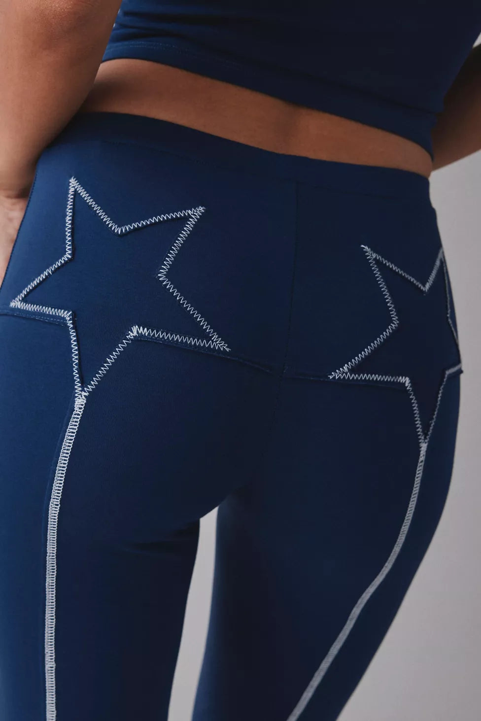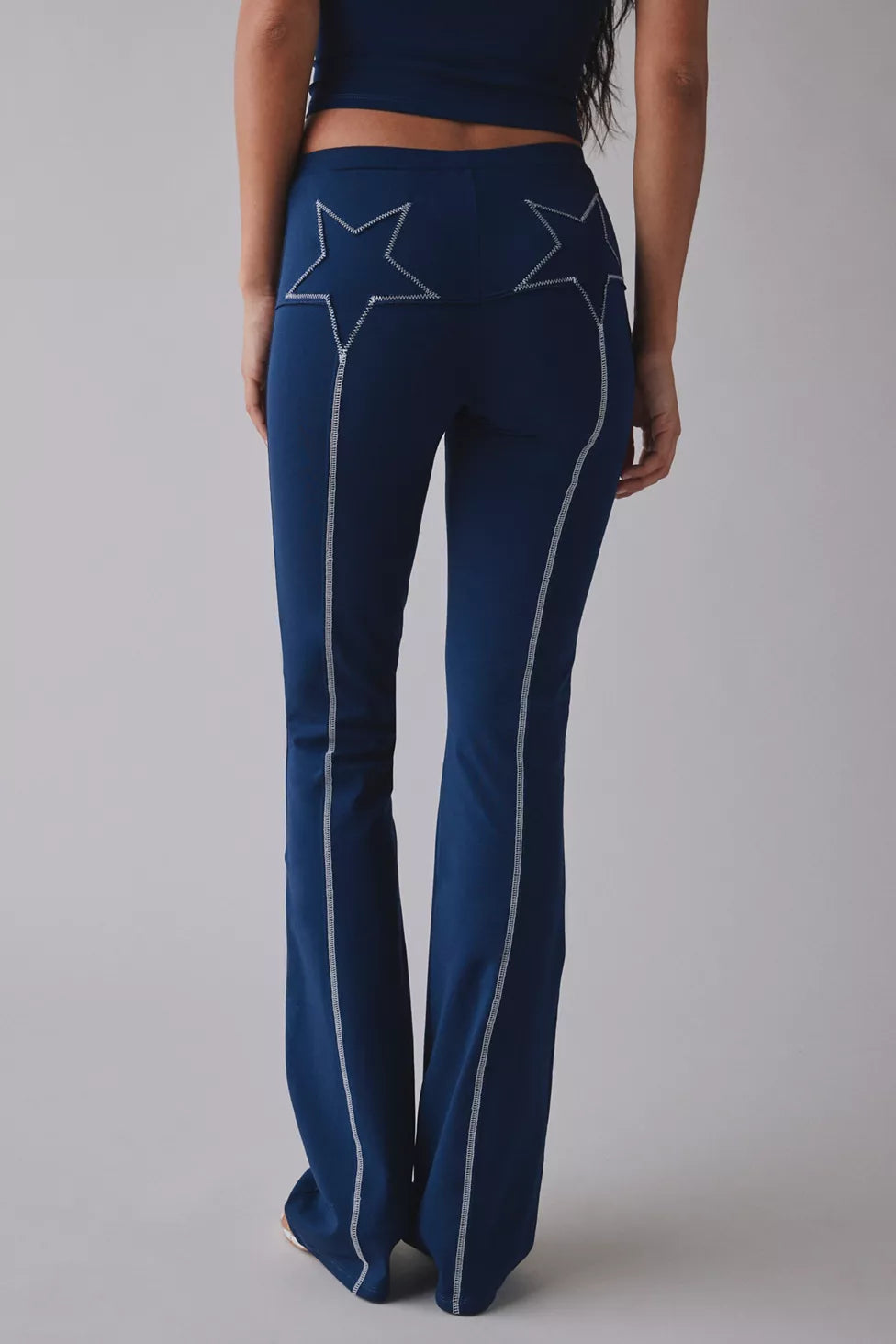 Western-inspired Frankies Bikinis X Bella Hadid lounge pant in a flare silhouette. Yoga pant designed in a soft cotton-blend knit featuring a low-rise waistline, contrast stitching and star details at the back for a playful finish.