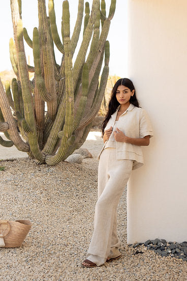 Ethically made in Canada, these linen pants feature our unique pleat detailing near the hem for added tactile interest, making them a perfect addition to your summer wardrobe.