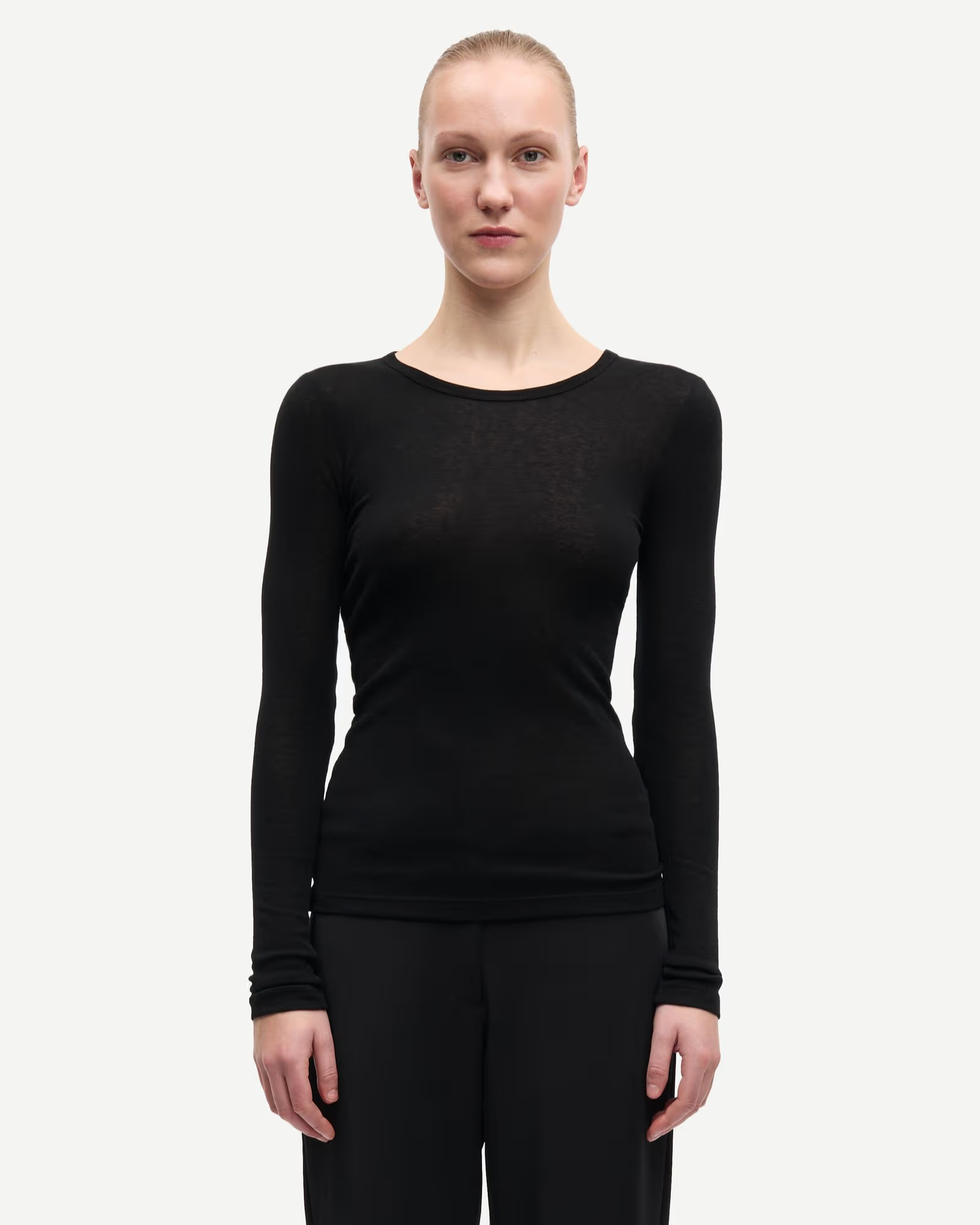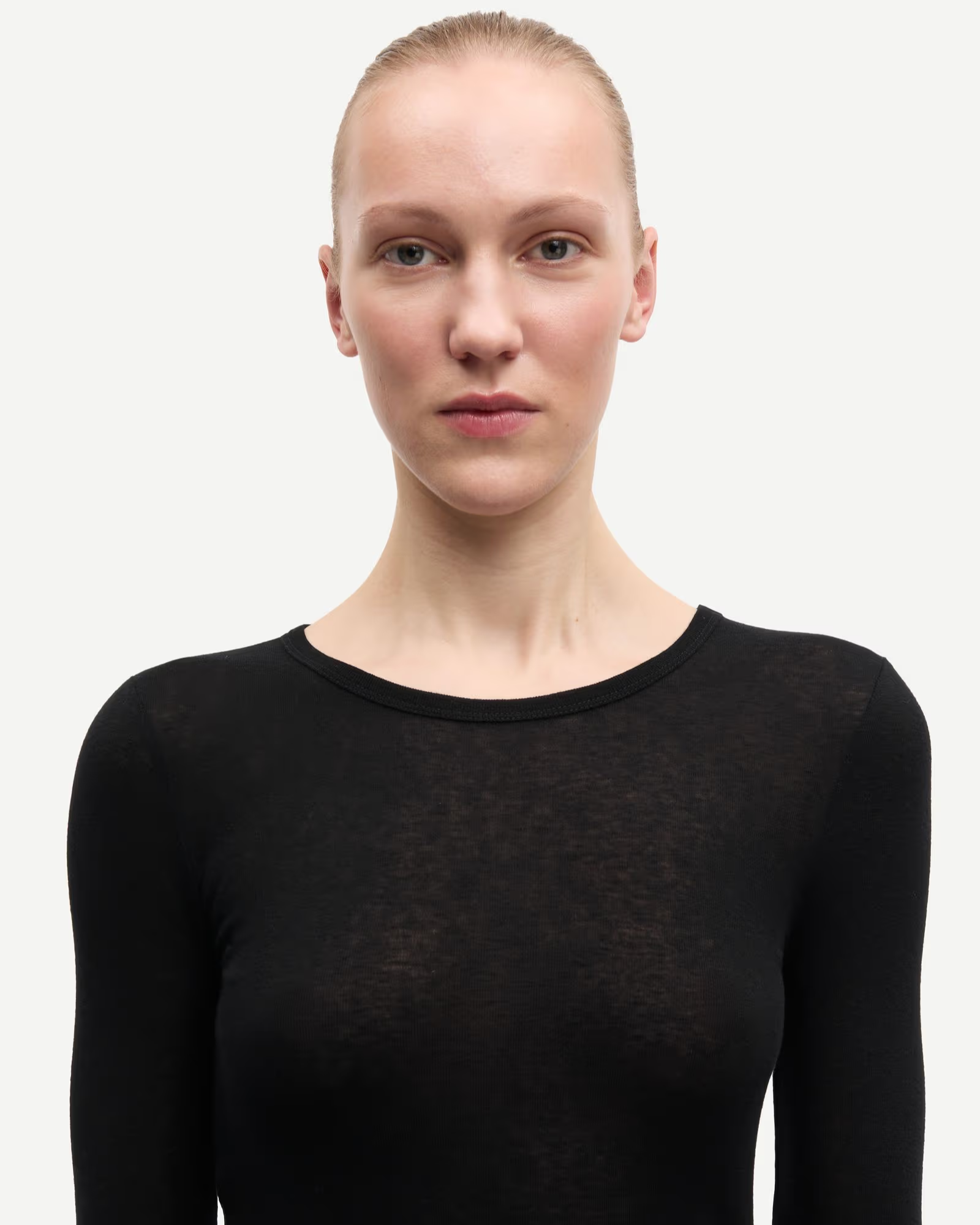 Long-sleeved jersey top with a slim fit. Crewneck. Main material made from a blend of TENCEL™ Lyocell and wool. This product contains TENCEL™