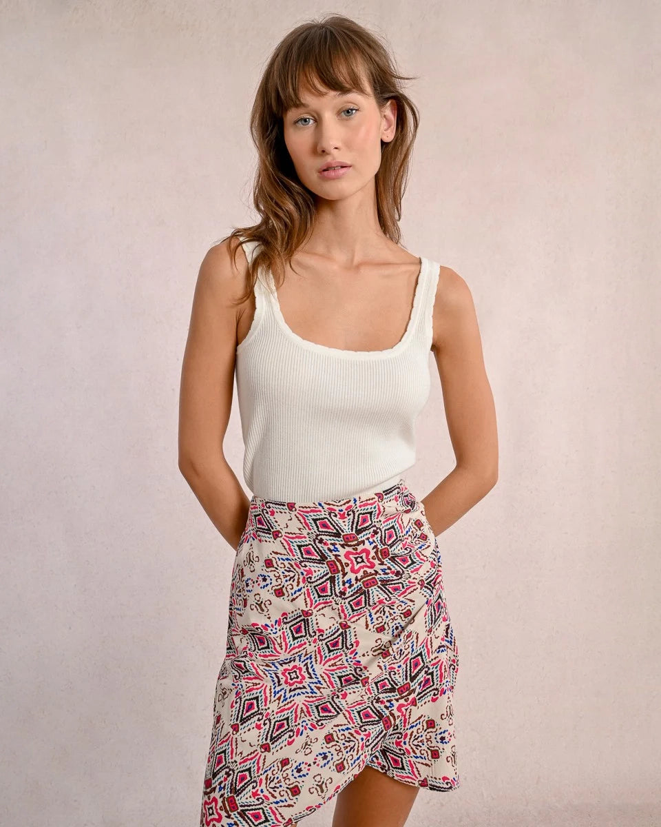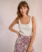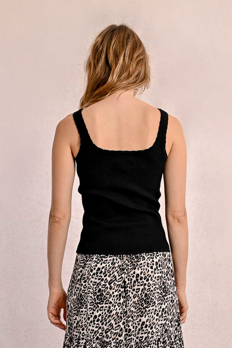 “slim rib-knit tank top -Straps -Square neckline -Fitted cut -Scalloped finish -Length from the shoulder 53cm for a size S