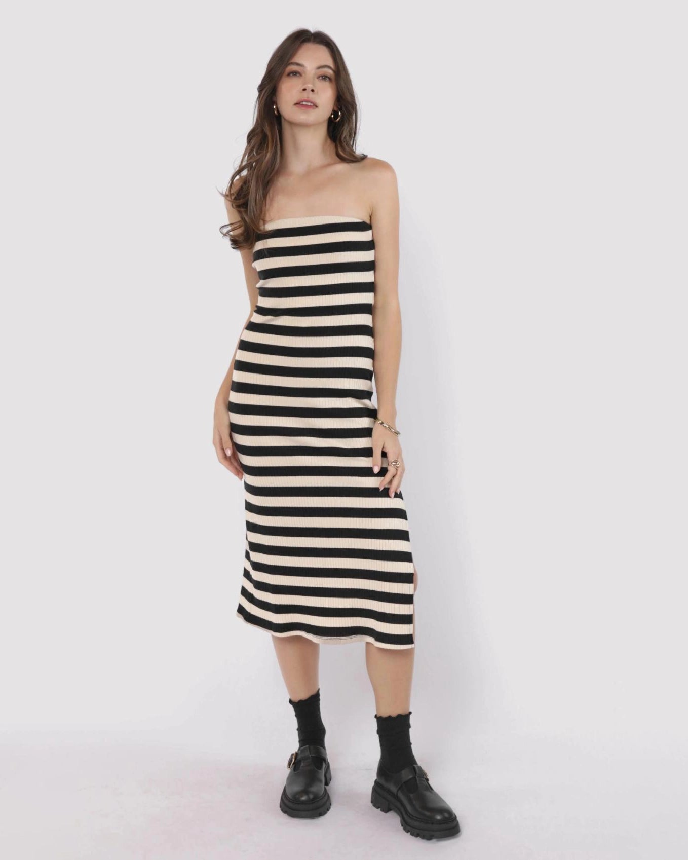 Soul Sisters Striped Rib Knit Tube Dress | Black Ivory