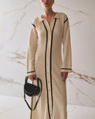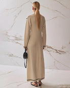 Our Autumn Knit Dress is the perfect blend of comfort and style. Designed with an elegant, collared neckline, feminine sleeves with the thick hem rib. For a different approach to styling, wear half unbuttoned with jeans or the Tommy Knit Pants underneath.
