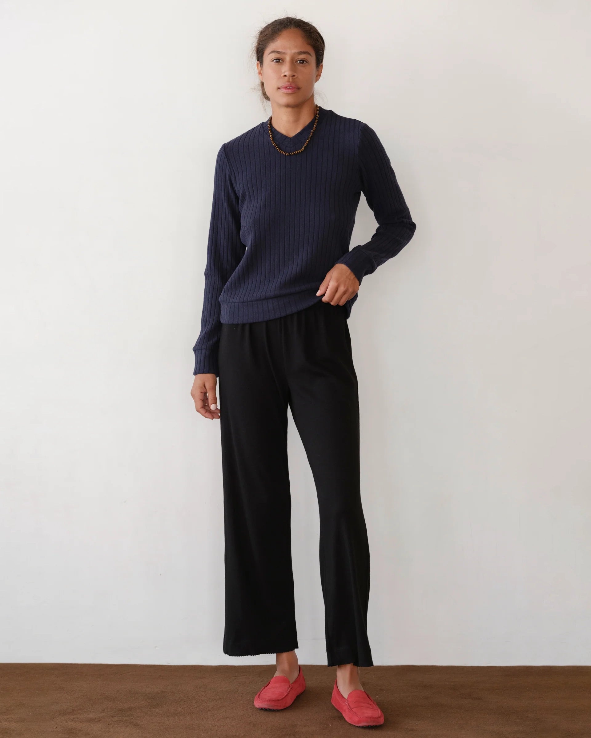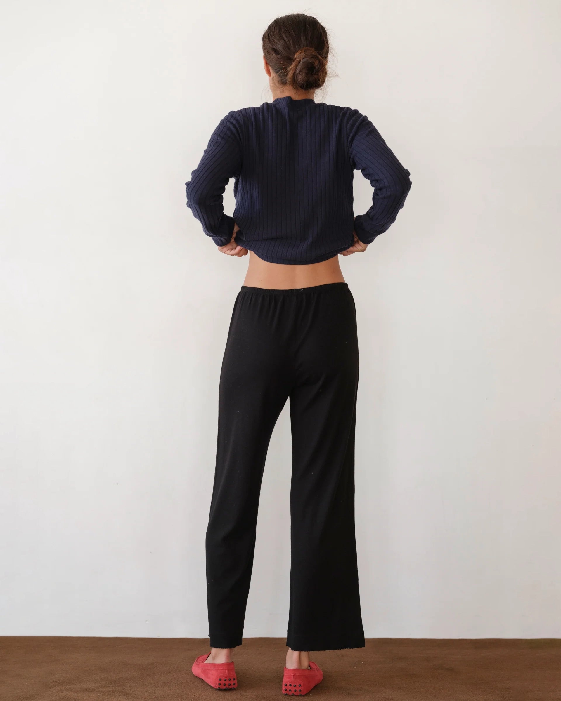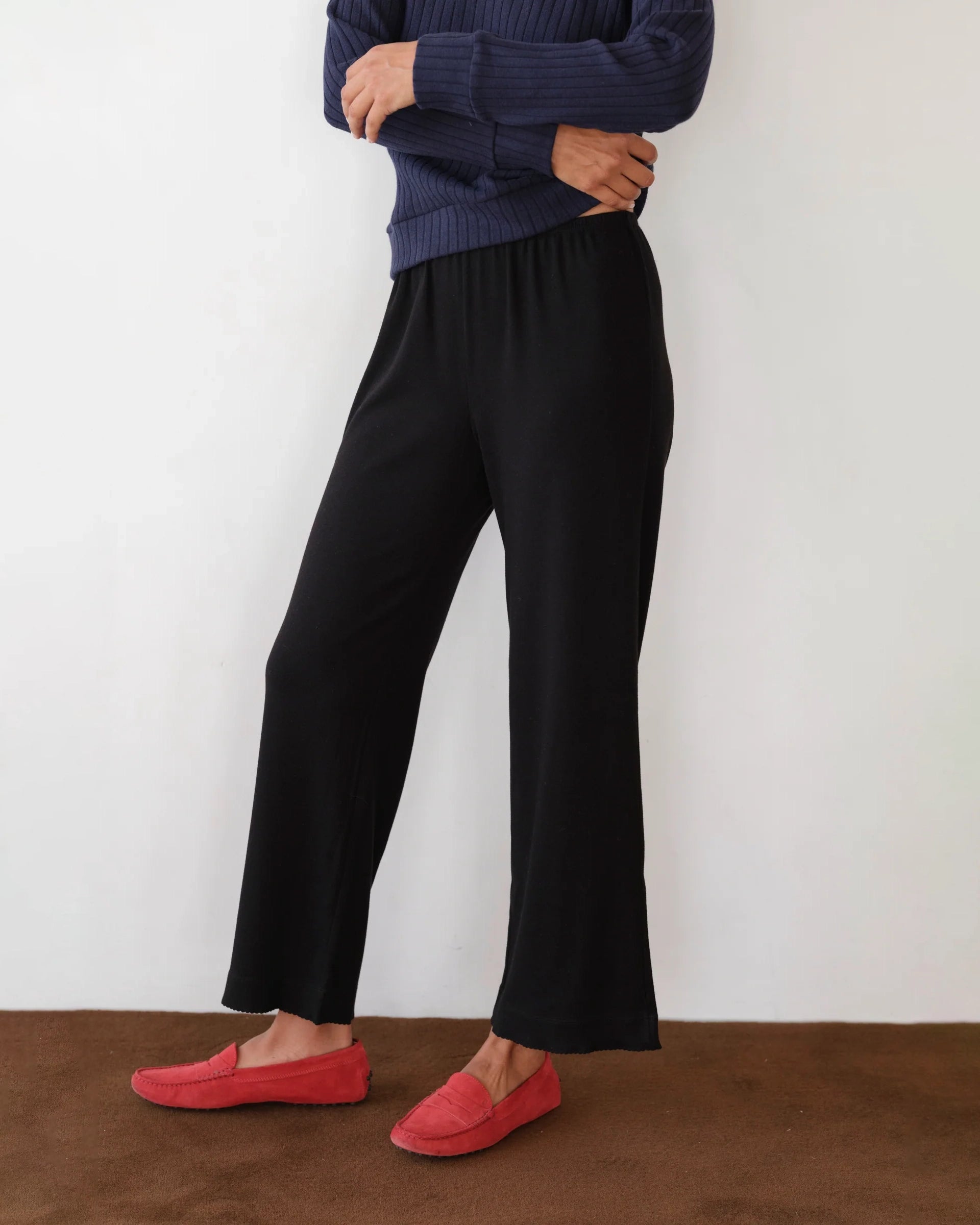 Our softest pant yet. The Baby Rib Scallop Pant features a buttery-soft feel, straight-leg silhouette, and scalloped trim. Designed with an elastic waist, cropped length, and subtle baby rib texture—easy to style, effortless to wear.