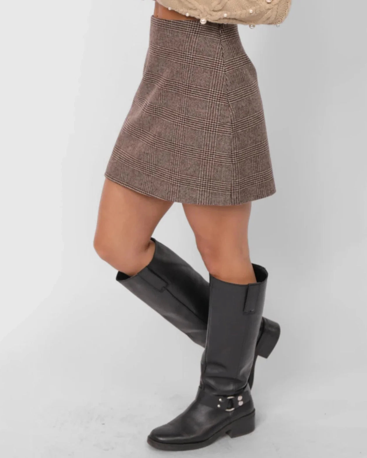 Ambition Houndstooth Mini Skirt | Dark Brown