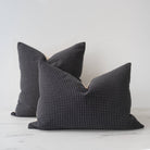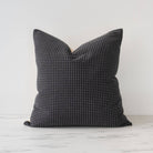 Our FRANKIE Pillow Cover is made up of a soft cotton, sourced from Thailand in cool tones of blue and charcoal, featuring a subtle cross-hatch weave. Perfect to mix and match with other prints and patterns needing a darker tone to create balance in a space. Limited supply - grab them while you can! -100% cotton -line with 100% cotton -backed with cotton/linen -YKK brass exposed zipper closure "with Insert" option: includes premium feather/down pillow insert Care: -we recommend spot clean with cold water and air dry, or dry clean for this product Designed and made by Rug & Weave, in Canada.