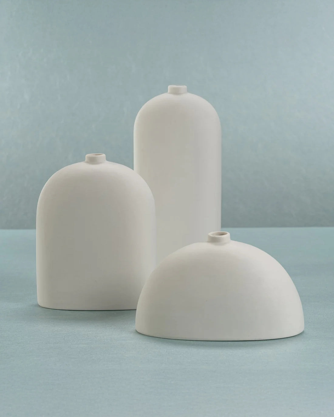 This design features a wide, stable base that tapers into a small opening at the top, ideal for showcasing single stems or minimalist floral arrangements. This shape is perfect for modern, elegant decor while ensuring stability for delicate displays.
