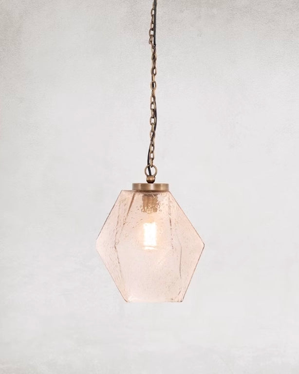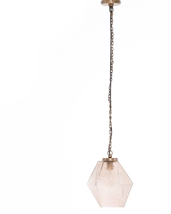 A rose-seeded glass shade and antique brass-finished iron canopy make this the right lighting to illuminate the hall, entryway or dining room, solo or in multiples. Antique globe bulbs recommended.