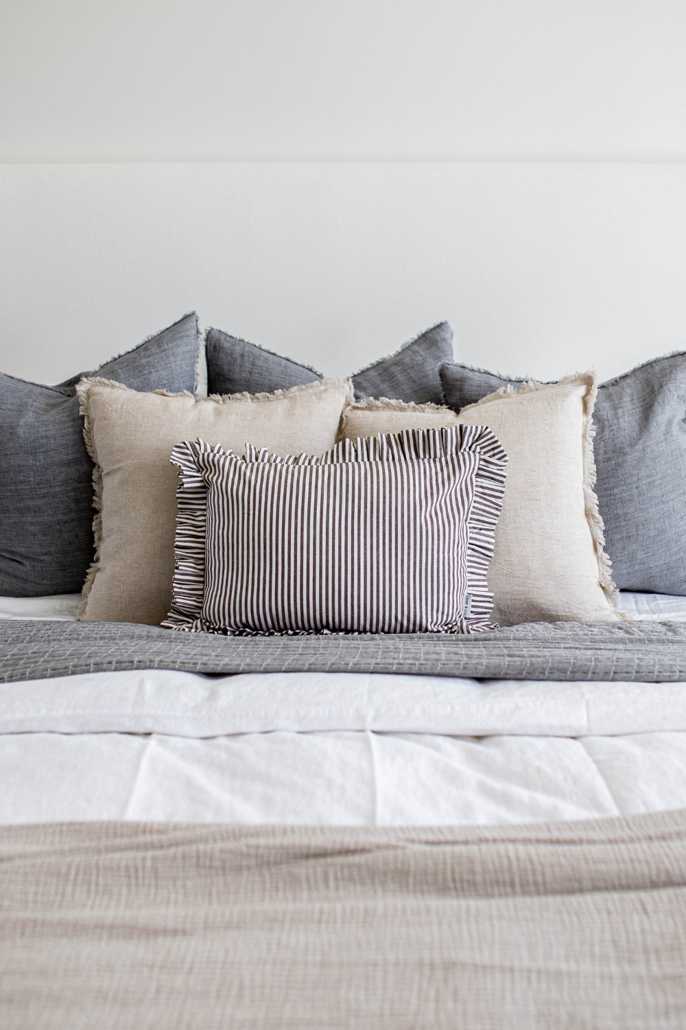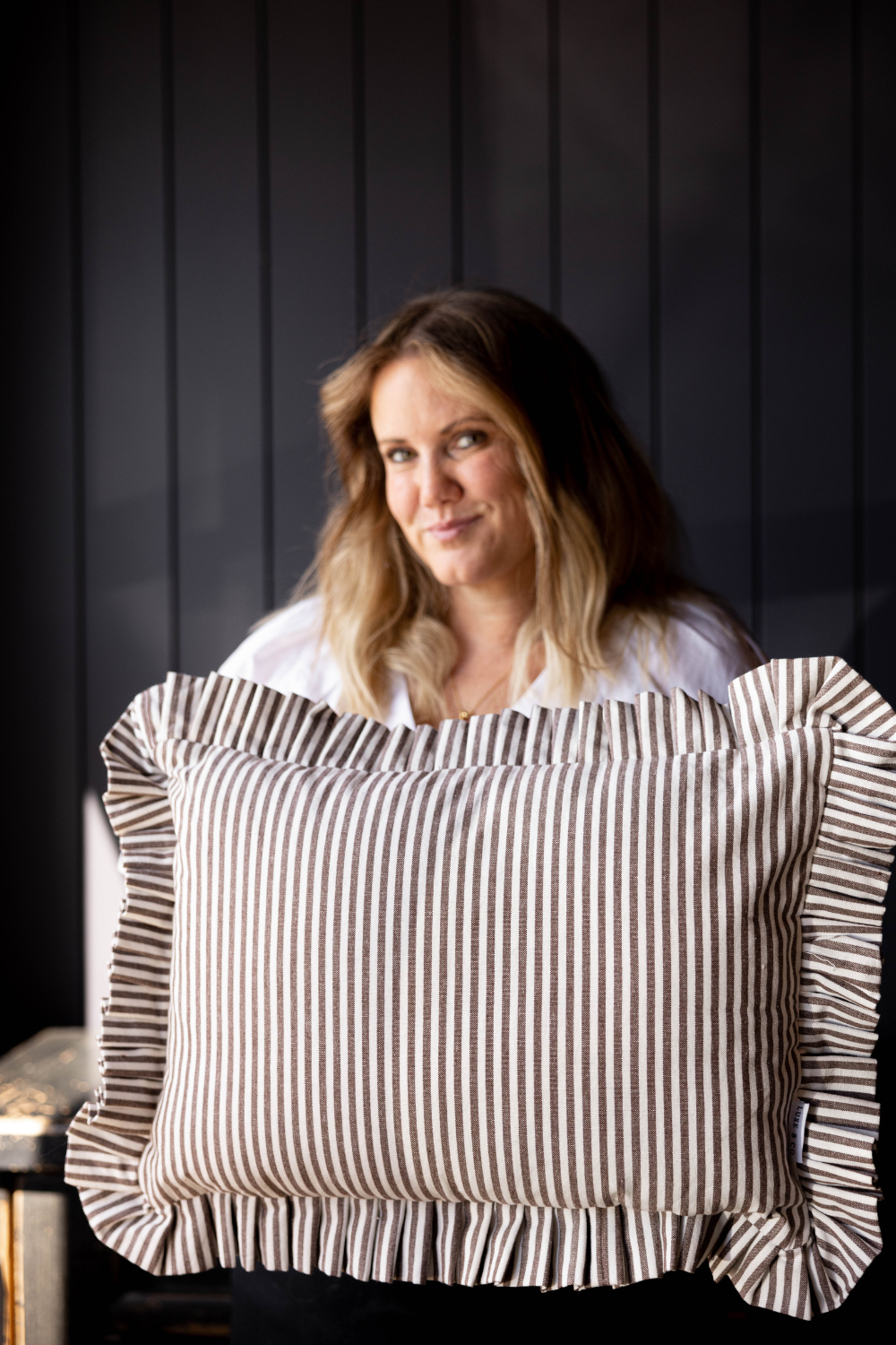 Ruffle Lumbar Pillow Cover Brown White Stripes