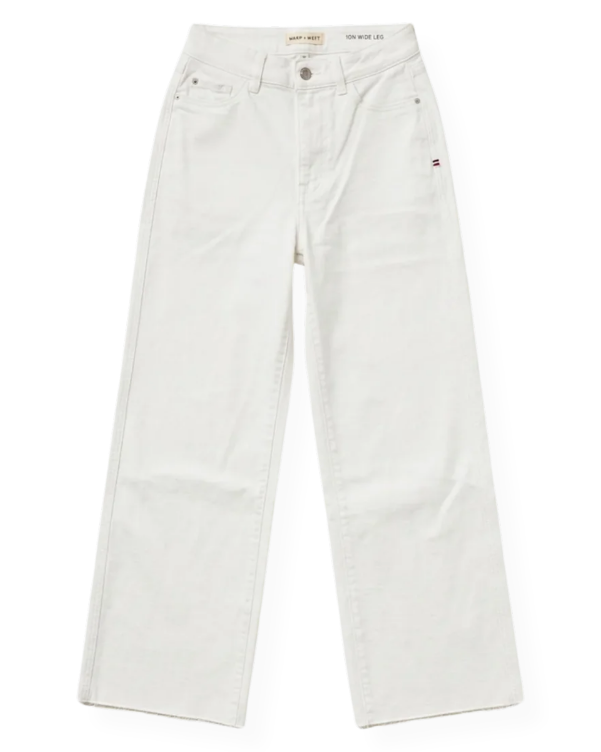 Crafted with innovative, good-for-the-planet denim, the Warp & Weft ICN Crop Wide Leg jeans sculpt and shape throughout. Cropped to the ankle and rendered in a clean, white denim, raw hems complete the look.