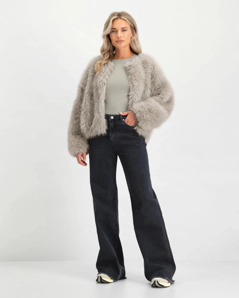 - 81% cotton, 18% polyester, 1% spandex- high waist- wide slightly flared legs- unfinished hem- stretch denim- 5-pocket design