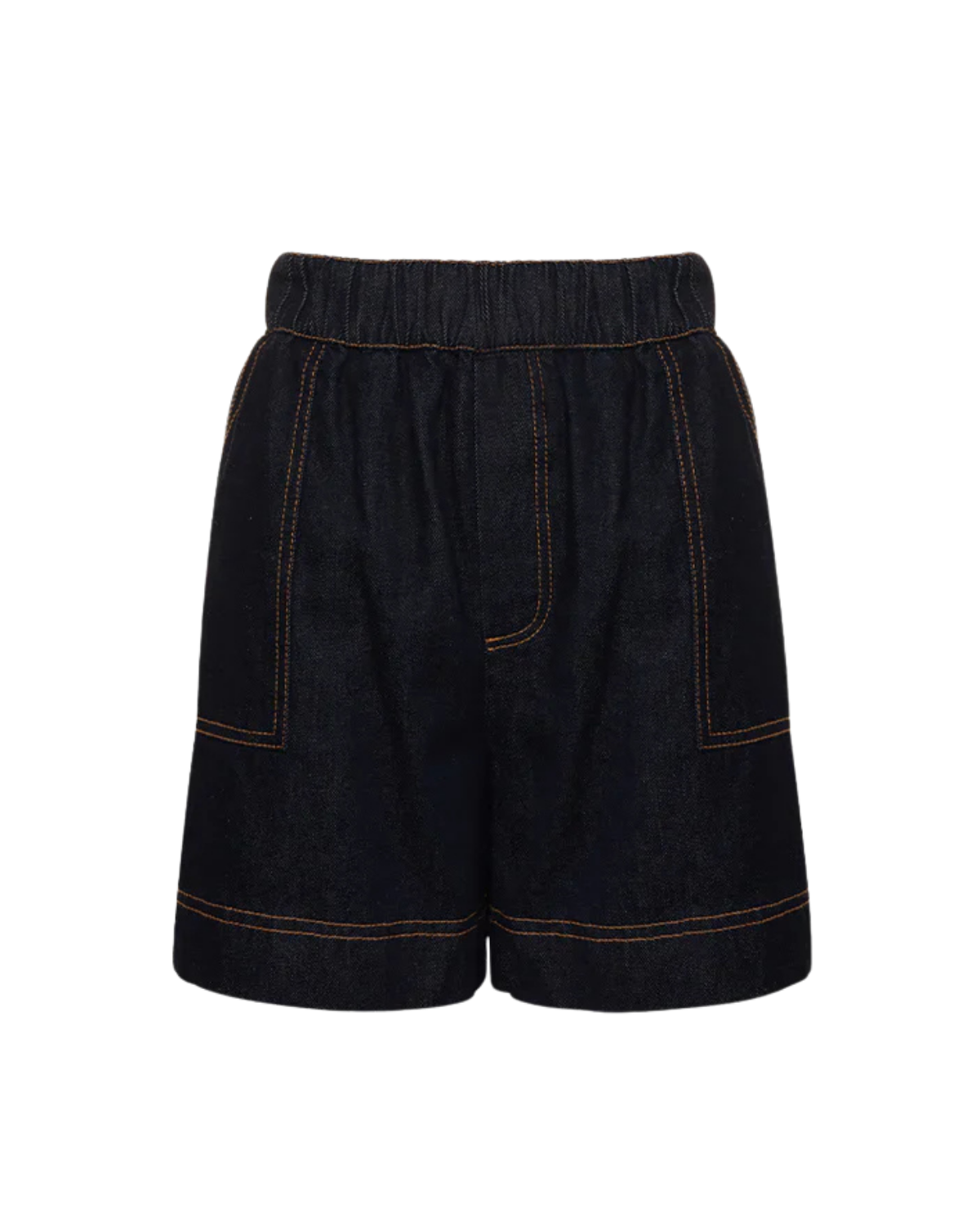 - Dark indigo blue denim relaxed fit shorts