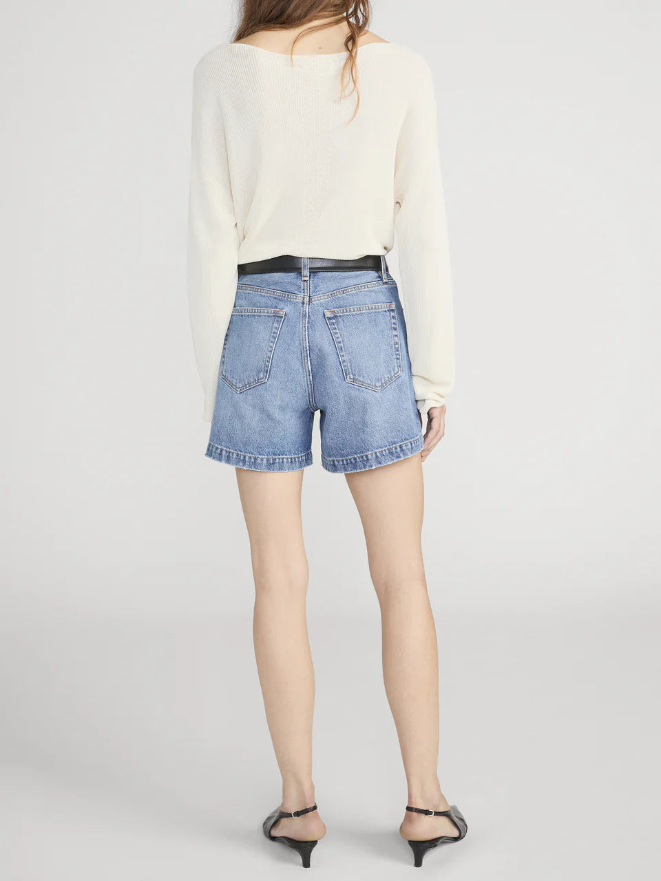 This high-rise tailored mini short has a just-right 4" inseam. A flattering, effortless fit, designed for repeat wear. Crafted in pure cotton.
