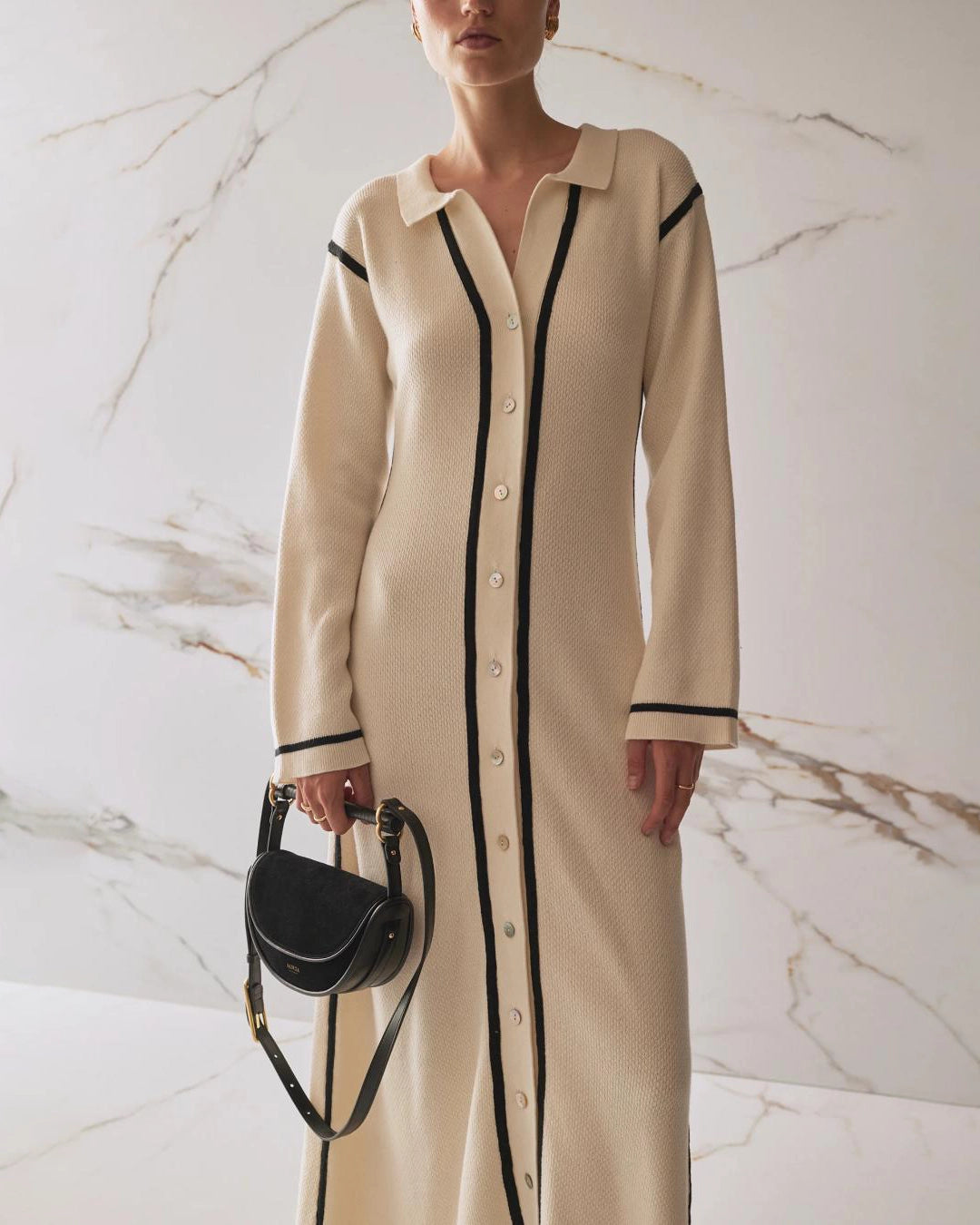 Polo Striped Sweater Dress | Heather Pearl/Black