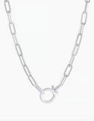 This silver plated chain link necklace can be worn solo or as the base necklace for any layered look. A uniquely designed hinge closure allows you to customize the length or the chain, or add charms.