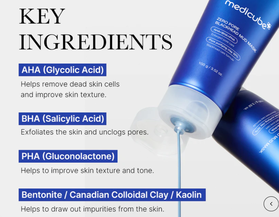 SIZE: 3.52 oz. Our unique 3-minute Quick Dry formula is meticulously crafted to target pores, enriched with a potent blend of specialized ingredients such as AHA, BHA, PHA, and Pore-Purifying Clay. Years of meticulous research and development by Medicube have led to the creation of a breakthrough product, proven to effectively care for blackheads within a mere 3 minutes. Our mud mask wraps around over 20,000 pores, delicately extracting blackheads and excess sebum, all while maintaining the utmost gentleness on your skin. Experience a comprehensive cleansing ritual as the emptied pores are seamlessly taken care of, ensuring a truly thorough skincare experience. Formulated with 5 types of clays varying in particle size, our mask caters to pores of all sizes and types, providing comprehensive care from blackheads to excess sebum and dead skin. Elevate your skincare routine and indulge in the ultimate pore care solution with Zero Pore Blackhead Mud Mask. Experience the difference today.