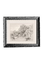 Summer Field Sketch French Black Mould Framed Art by Luxe B Co. This stunning piece, encased in a high-quality frame, enhances the aesthetic of any space. It is ideal for those wanting to add an extra touch of decor to their kitchen, living room, bedroom, or shelf display.