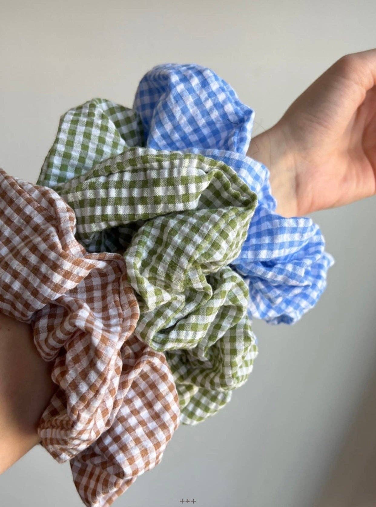 - Those scrunchies are made by 100% cotton seersucker - Super stretchy and strong double elastic inside - Oversized: Diameter 19cm - Made in Billy Bamboo studio Toronto, Canada