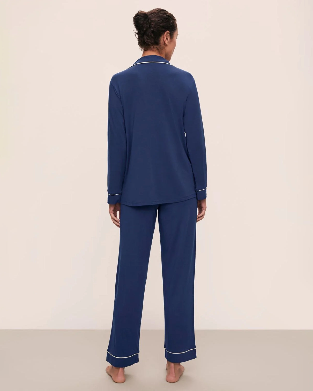 Gisele Printed Long PJ | Duo Stripe Pine/Ivory
