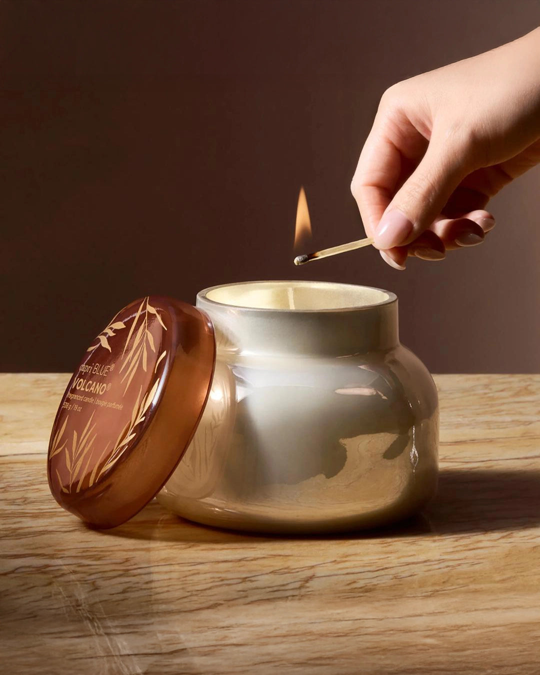 Our bestselling scent, now dressed for fall. The limited-edition Volcano Autumn Glow Signature Candle pairs tropical fruits and sugared citrus with a cozy, seasonal look. Housed in a luminous pearlescent jar with a rich mocha brown lid, it’s the perfect balance of bright and warm. Bring home fall's fresh warmth before it's gone.