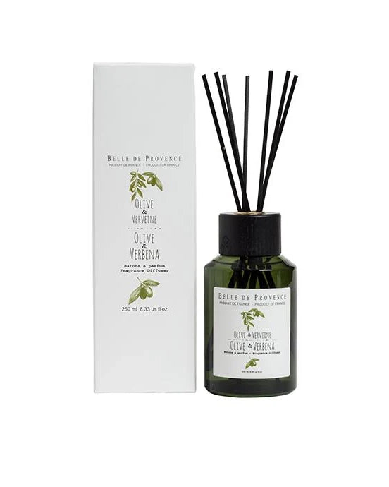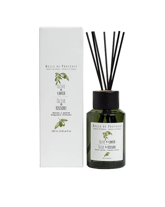 The olive tree, a sacred symbol of Provence, is the inspiration behind the Belle de Provence Olive Oil collection. An infusion of olive leaf extract is combined with the herbal fragrances of that region, an earthy home fragrance collection that brings you closer to nature. Enjoy the slow diffusion of these scents in your home with our decorative fragrance diffusers! Lasts approximately 4 to 6 months. 250mL/8.33 us. fl. oz.
