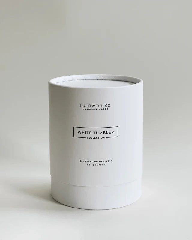 Our candles are hand-poured in a glossy white tumbler using a custom blend of 100% soy wax and pure coconut wax, premium grade fragrance oil derived from essential oils, and a braided cotton wick for an environmentally friendly, clean burn.