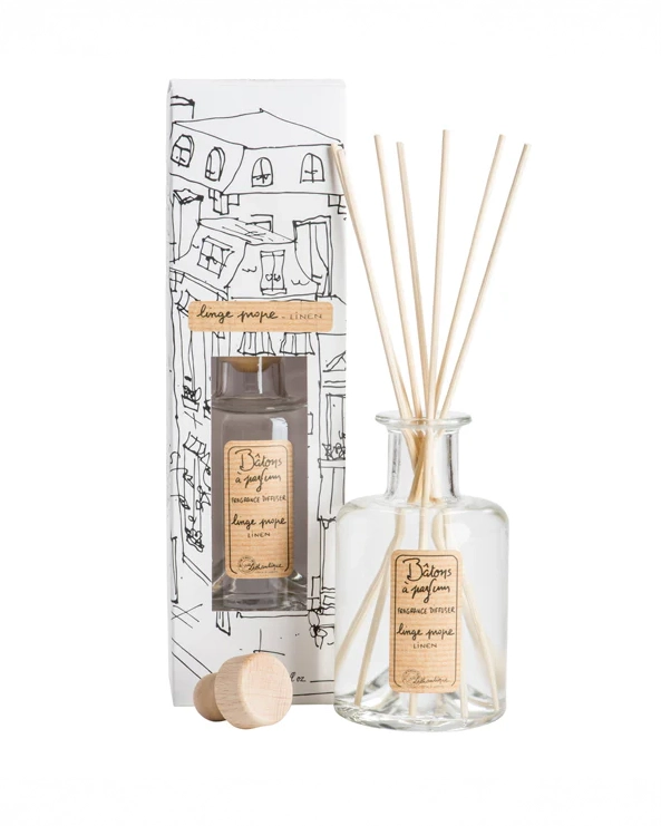 Bring the aromas of France into your home, with Lothantique’s line of Scented Diffusers! Brilliantly fragranced, the Authentique Collection’s Scented Diffusers are an easy way to scent the home. Just place the reeds into the bottle and the fragrance travels up and diffuses into the air! Each bottle lasts approximately 3-–4 months. 200mL/6.66 us fl. oz.