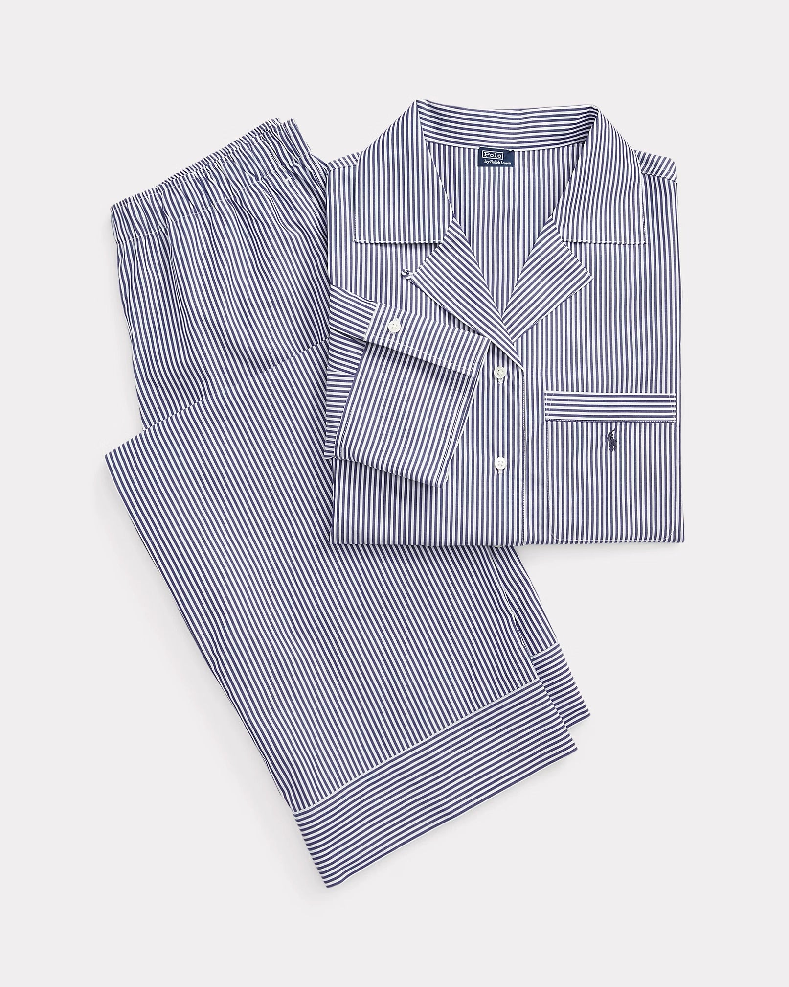 This two-piece pajama set is designed with classic shirting stripes and embroidered with our signature Pony. Crafted for comfort and longevity, its made with cotton poplin specially selected for its breathability and soft hand feel that will only get better over time. Ralph Lauren partners with Better Cotton™ to improve cotton farming globally. Better Cotton trains farmers to use water efficiently, care for the health of the soil and natural habitats, reduce use of the most harmful chemicals, and implement the principles of decent work.