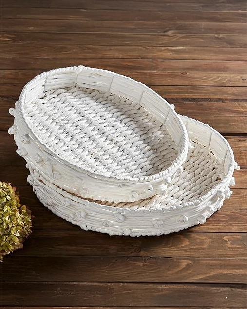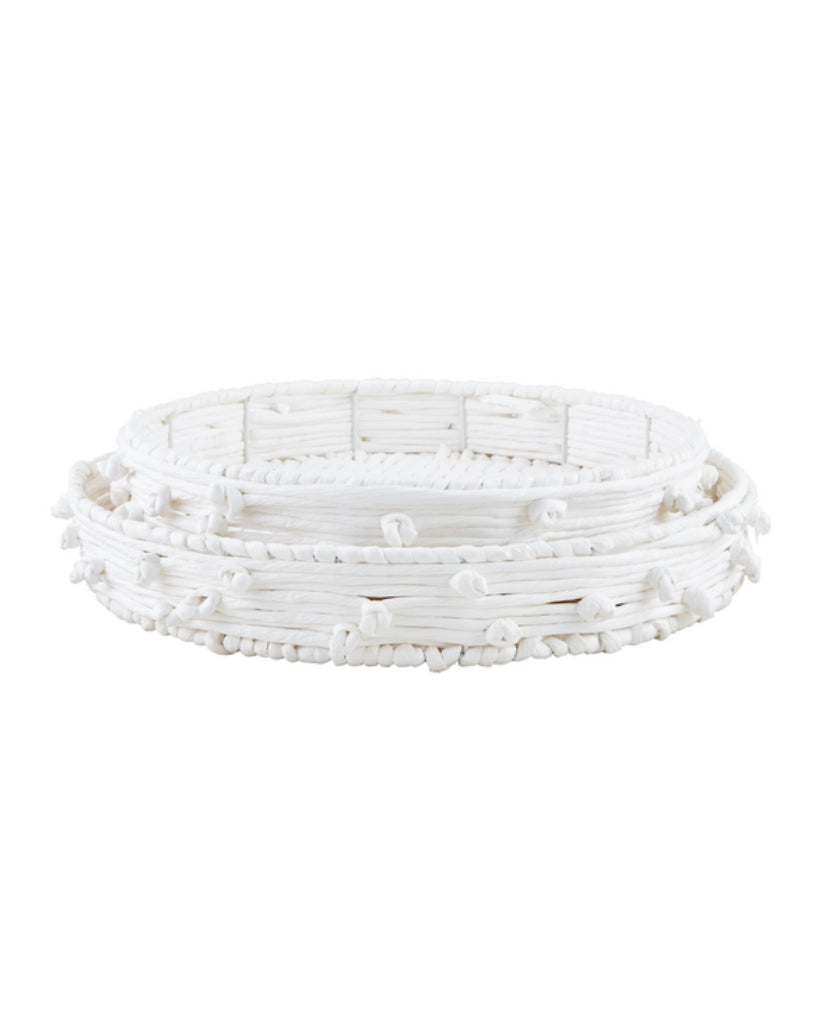 - The Knot Paper Rope Tray Features Two Intricately Designed Trays Crafted From Durable Paper Rope, Each Adorned With Dimensional Knots For A Unique Aesthetic