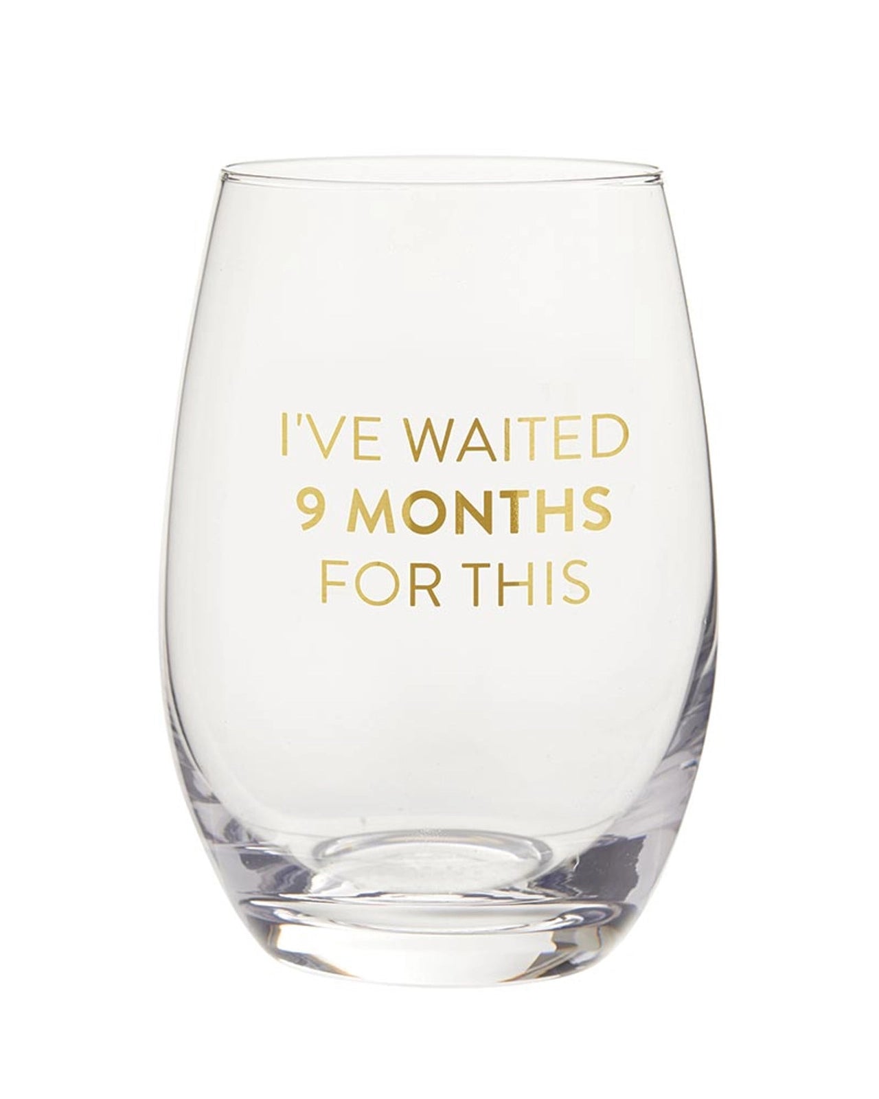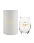 I've Waited 9 Months For This...celebrate the journey to motherhood with this classic stemless wine glass.
