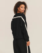 Crafted from lush midweight fleece, this sweatshirt combines softness and structure for everyday wear. Featuring contrasting color tape along the sleeves and across the back with relaxed dolman sleeves, it delivers a modern, athletic edge with an elevated yet comfortable fit—pair it perfectly with the Gigi Sweatpant for a coordinated look.