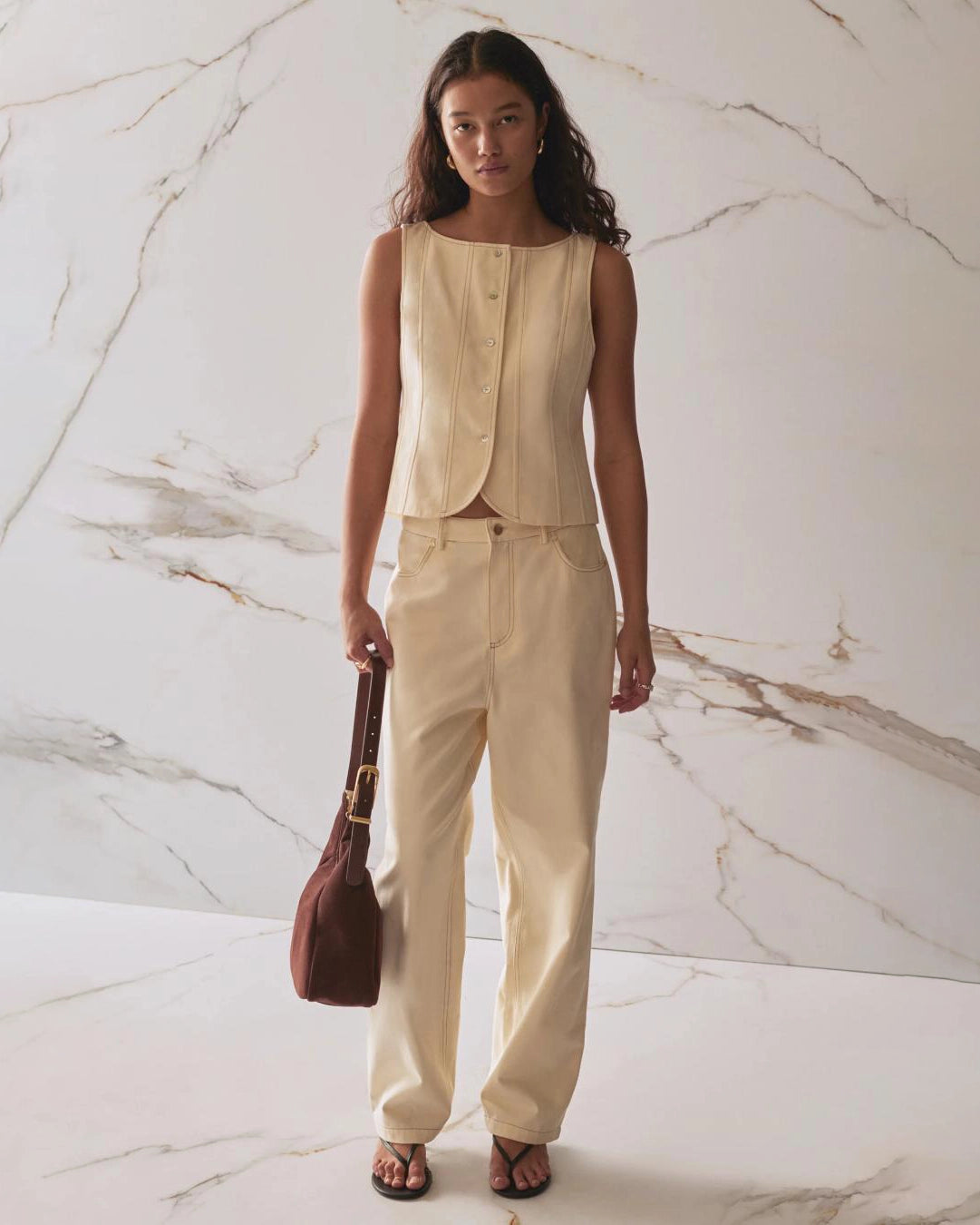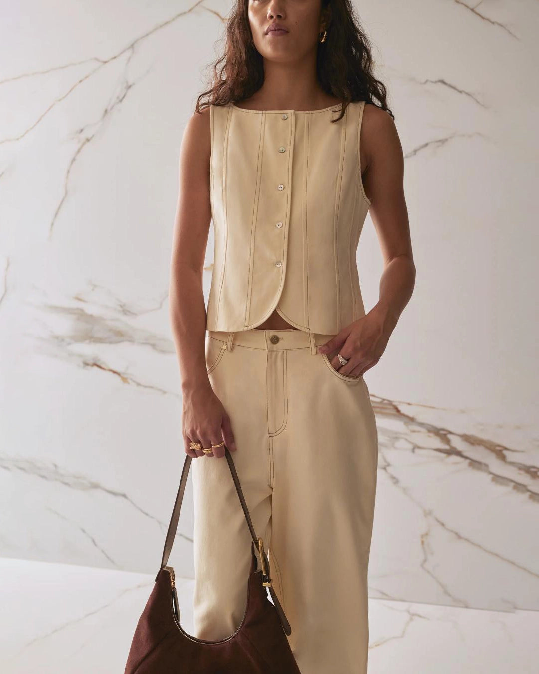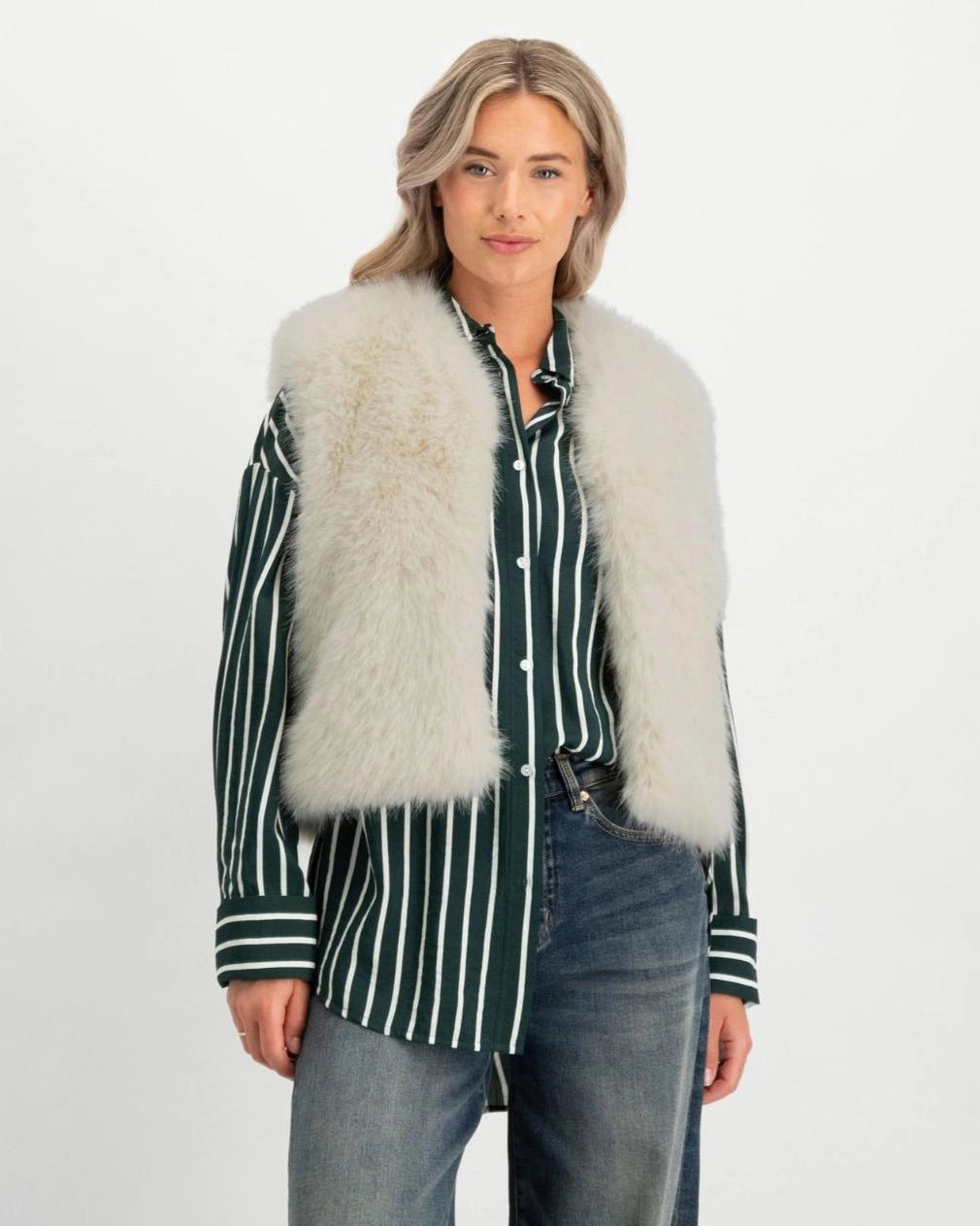 Silky Fur Vest | Almond Cream
