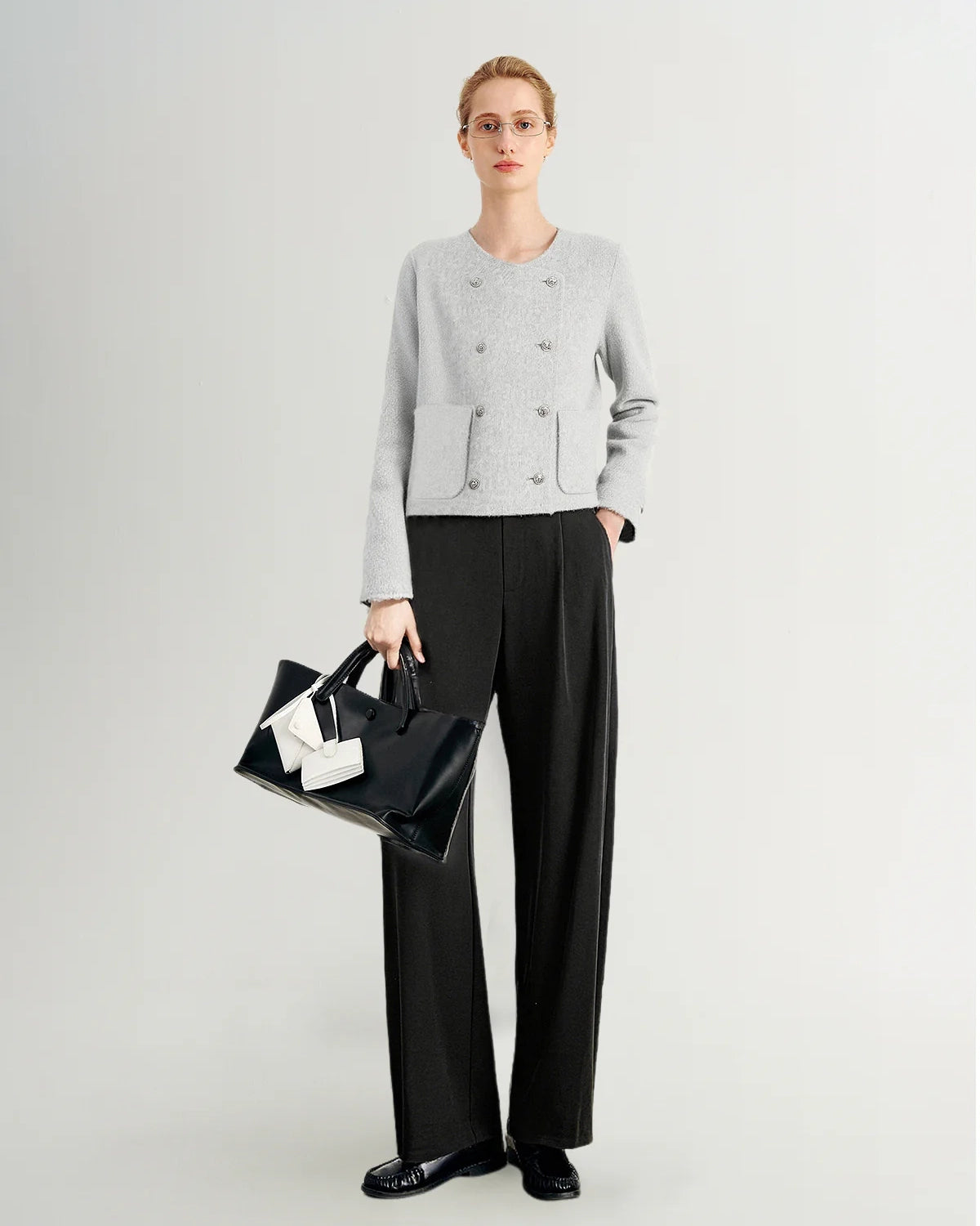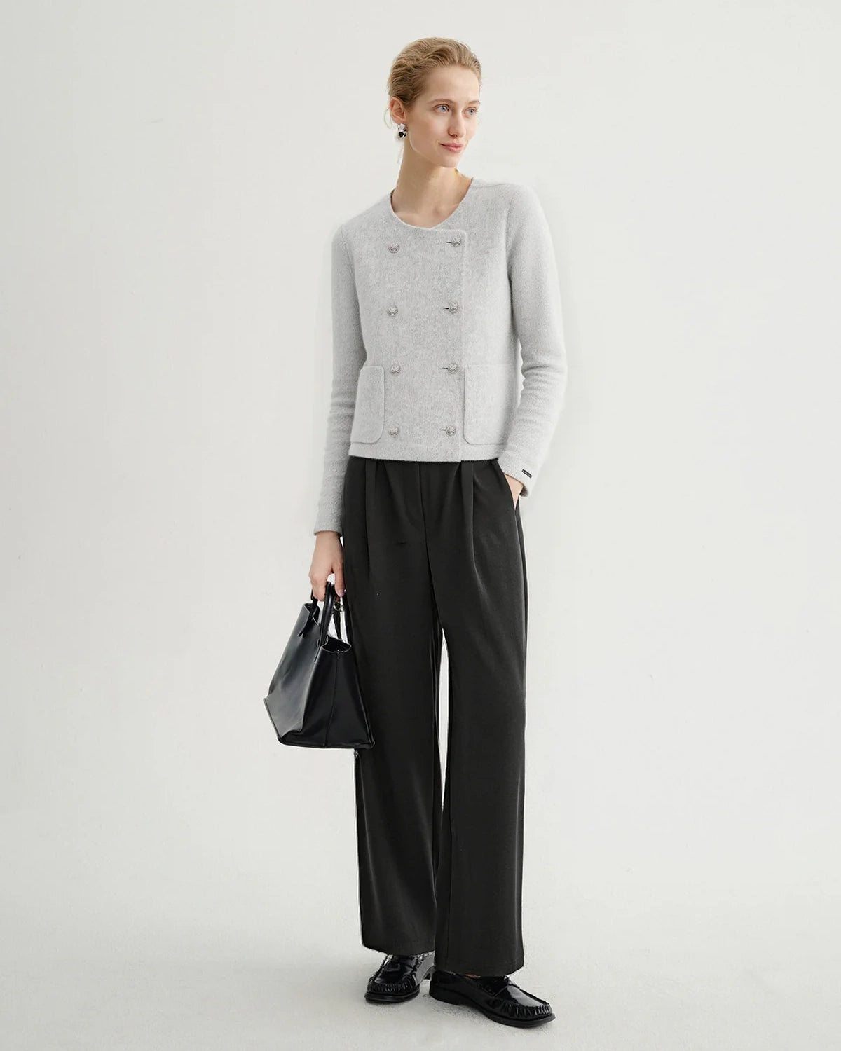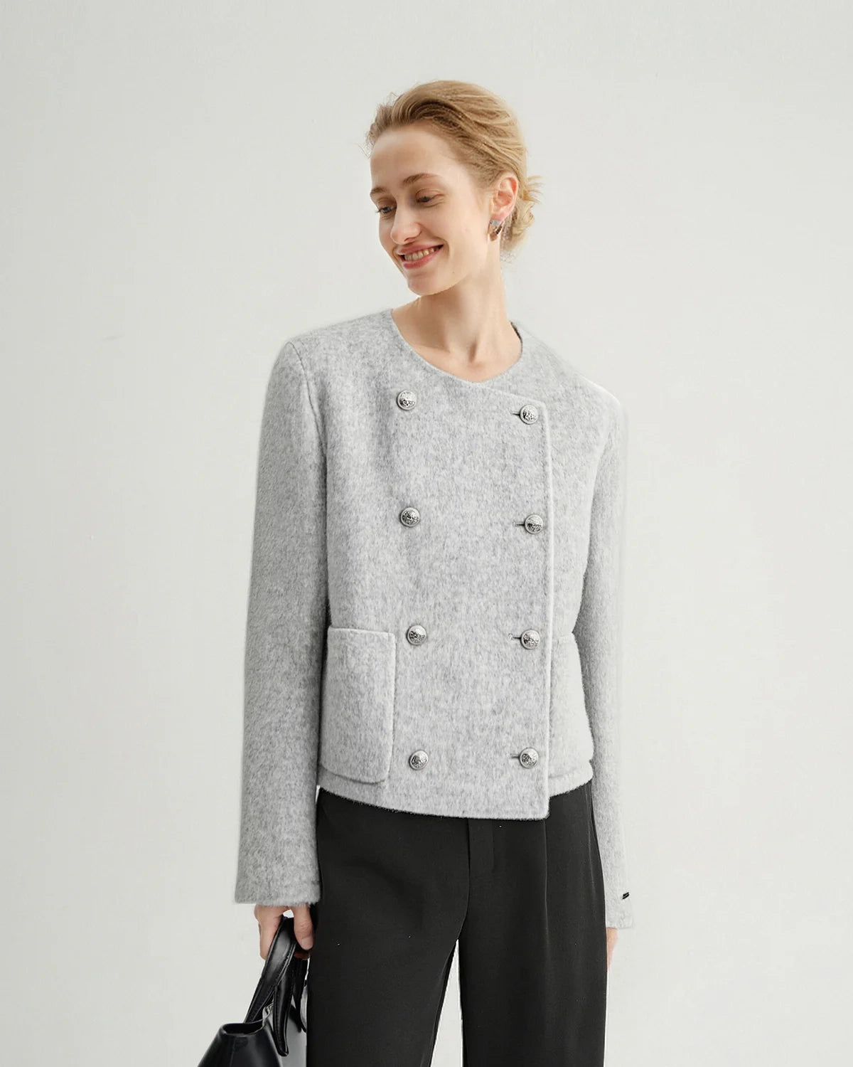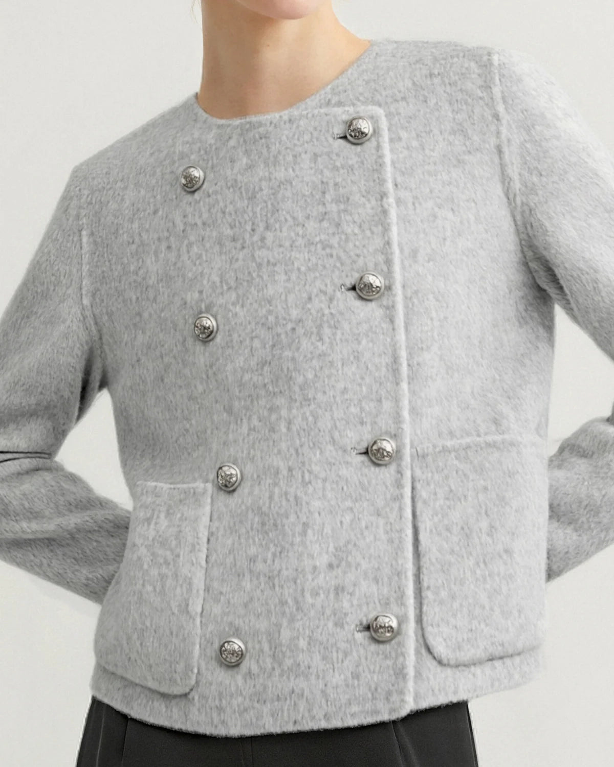 Wool Button Jacket | Light Grey