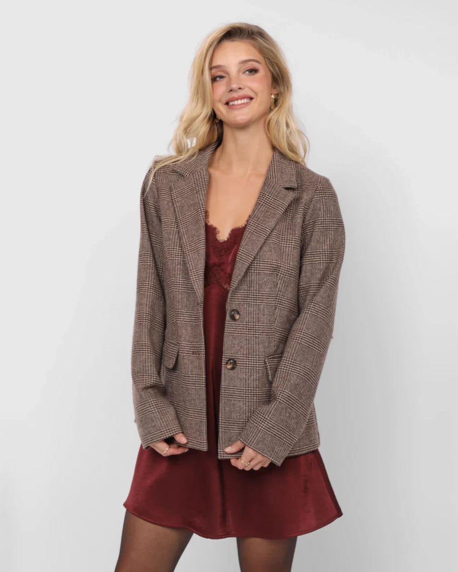 Ambition Houndstooth Blazer | Dark Brown