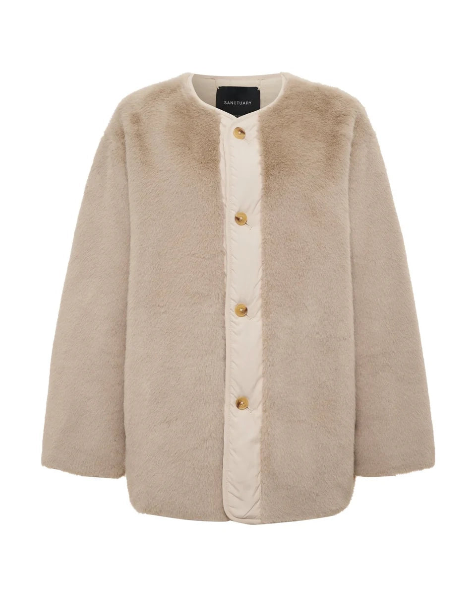 Reversible Fur Liner Jacket | Almond Cream