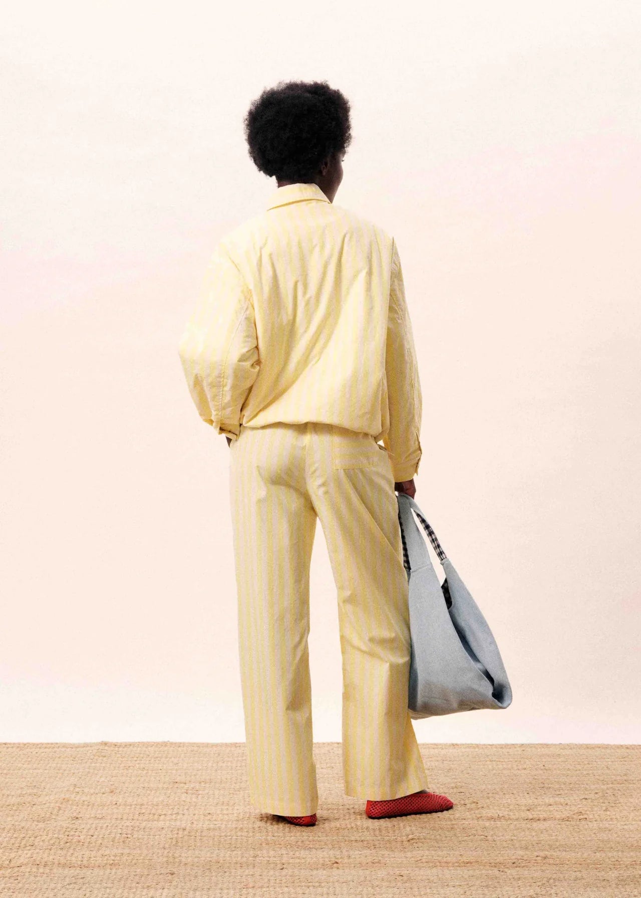 Wide-leg trousers with vertical stripes and an elasticated waistband